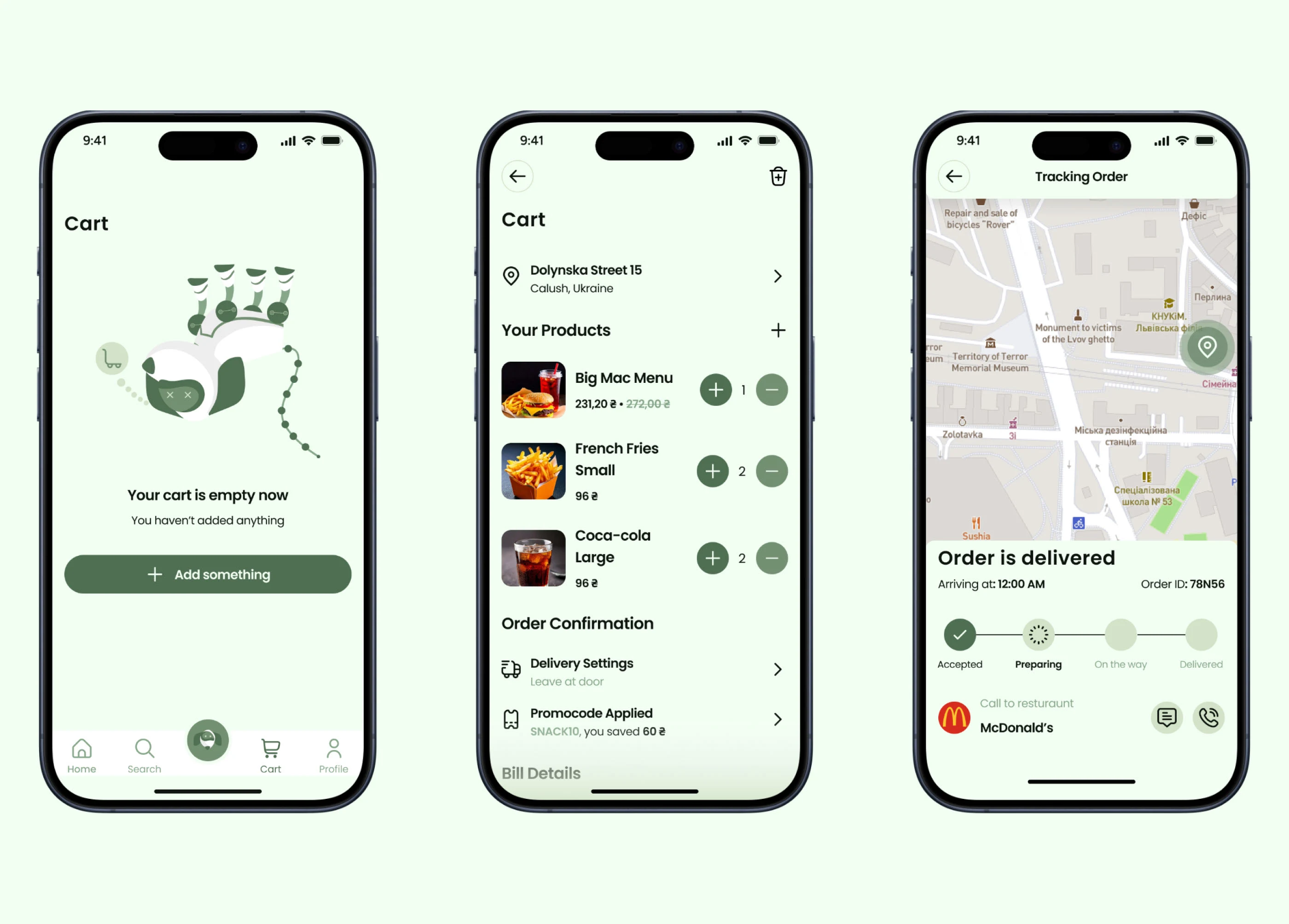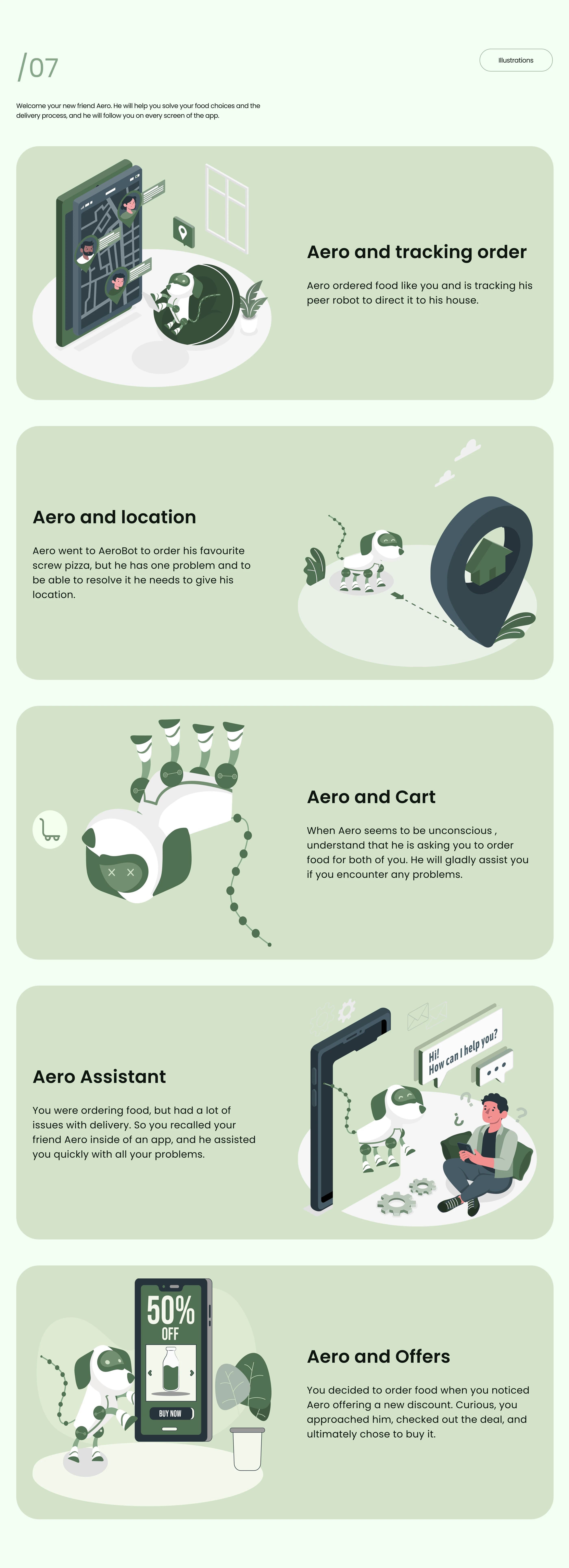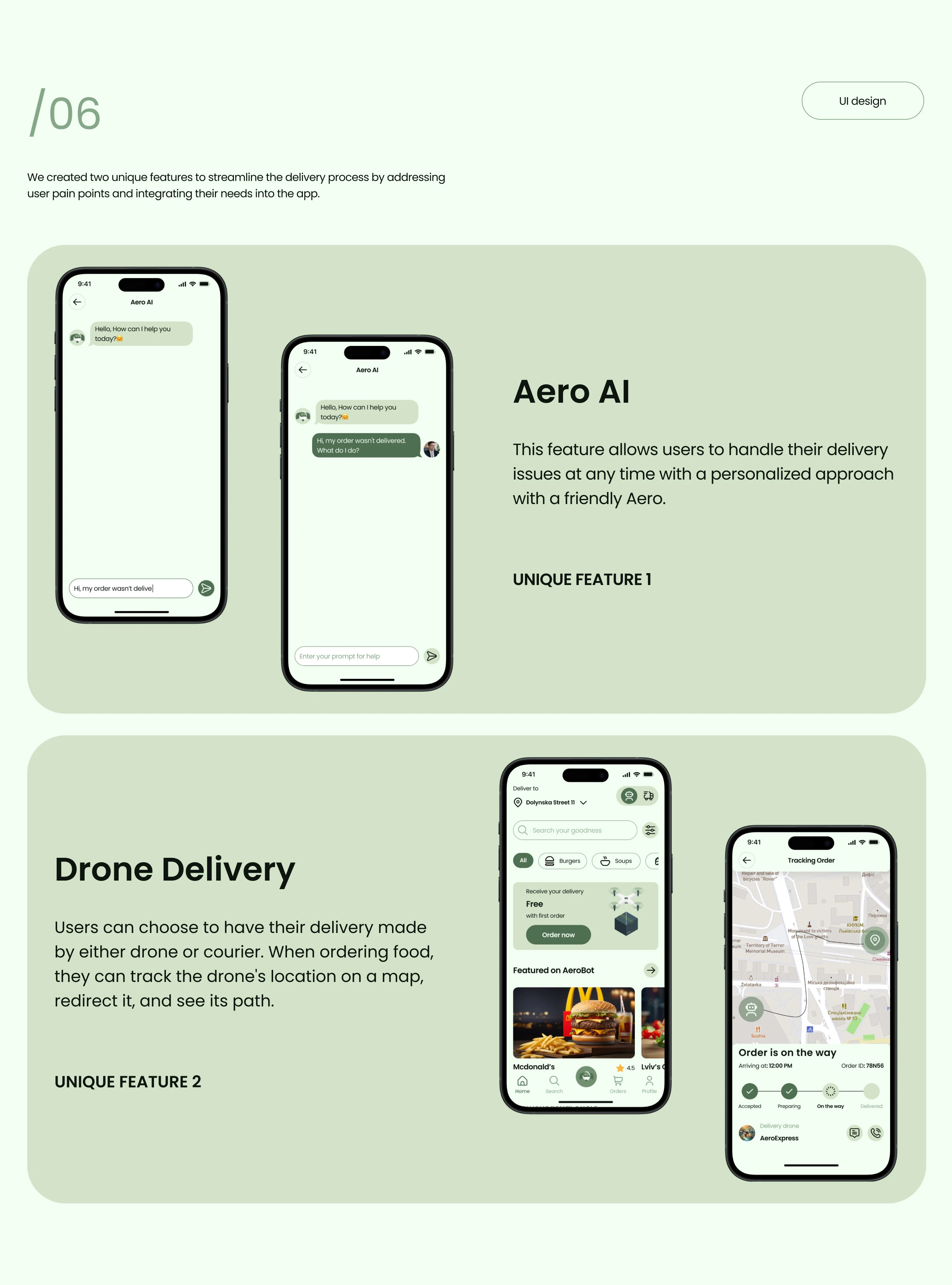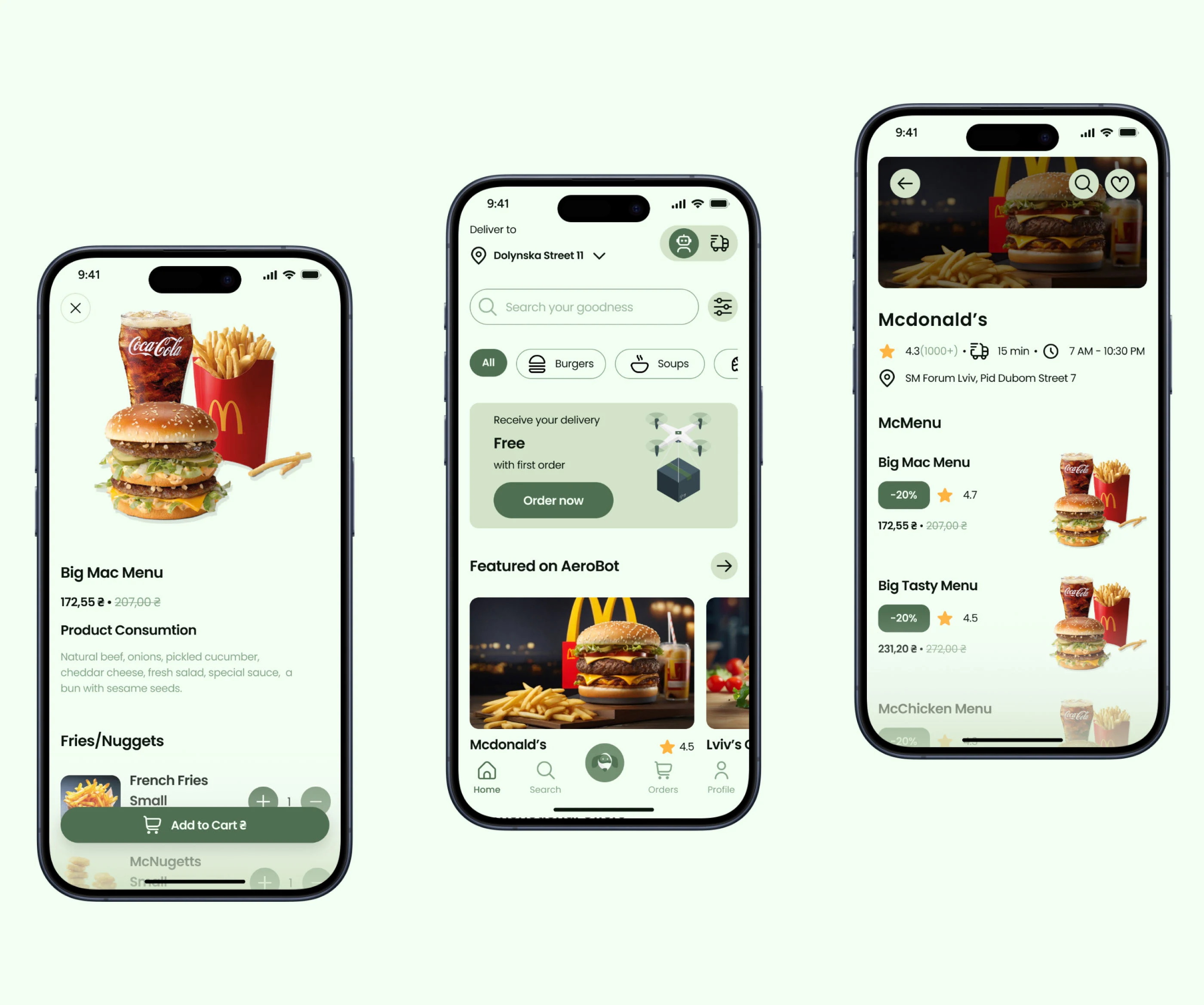 AeroBot is an AI-powered app for ordering food, selecting dishes from various restaurants, and tracking deliveries by drone or courier in real-time.