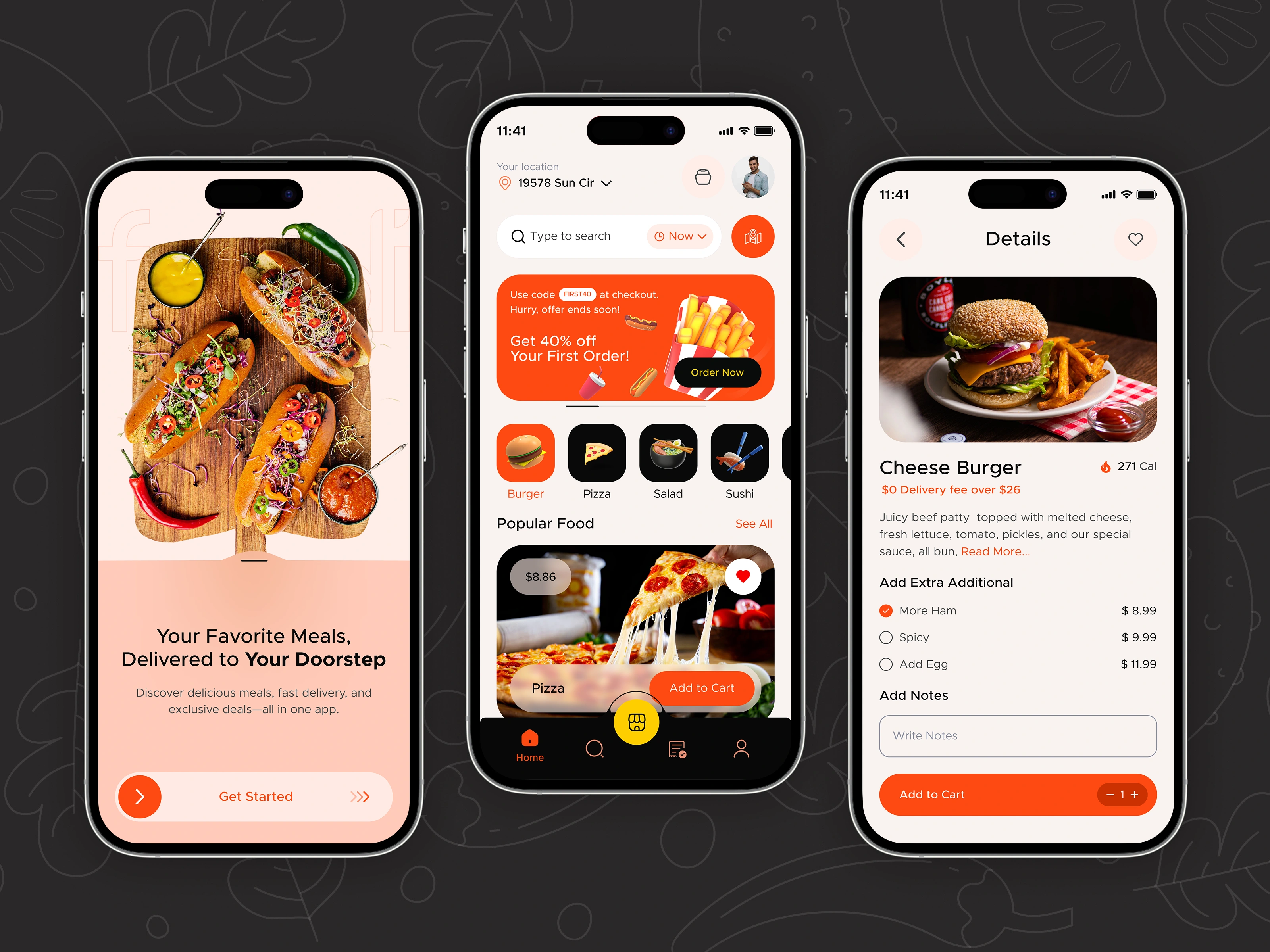 Designed a seamless and visually appealing mobile UI for a food delivery app.