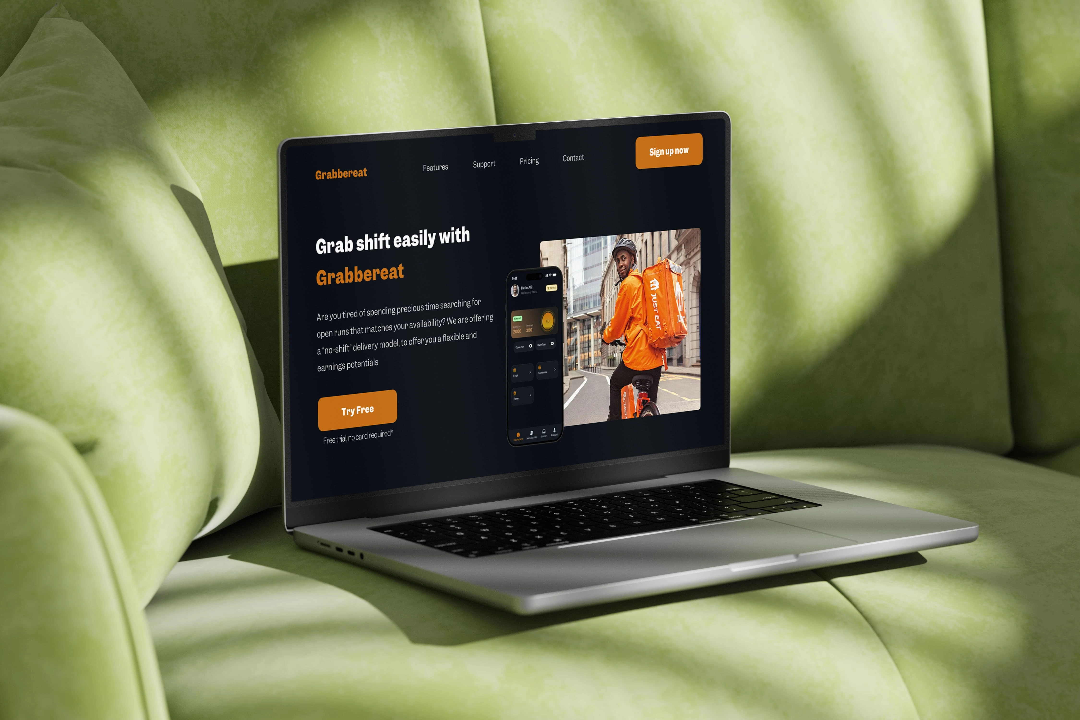 Grabber Eat is a third-party platform that helps couriers automatically grab high-demand delivery shifts on apps like JustEat and SkipTheDishes. While the product was functional, the UI lacked clarity, hierarchy, and modern visual appeal. I was tasked with redesigning the web app interface and marketing landing page to improve usability and make the brand feel more trustworthy and professional.