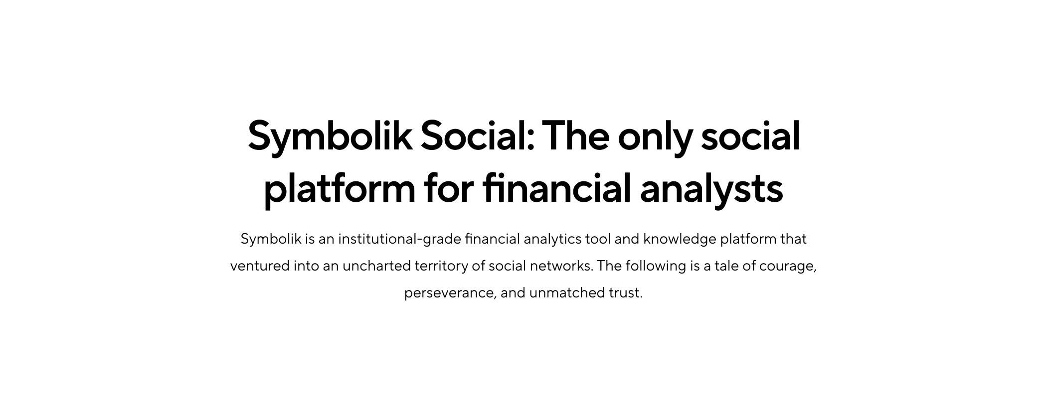 Symbolik is an institutional-grade financial analytics tool and knowledge platform that ventured into an uncharted territory of social networks.