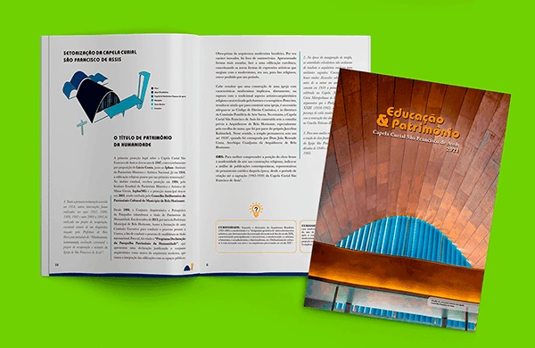 Visually, the booklets honour the Chapel itself. Their colours and graphic elements draw from Oscar Niemeyer’s iconic design, reflecting its curves, forms, and modernist spirit. This careful translation of architecture into visual language was essential: the client was the Church administration, and the subject a UNESCO-recognised masterpiece. By combining clarity, beauty, and respect, the collection celebrates the Chapel not only as a work of art and architecture, but also as a sanctuary — a place where history, spirituality, and culture converge.
