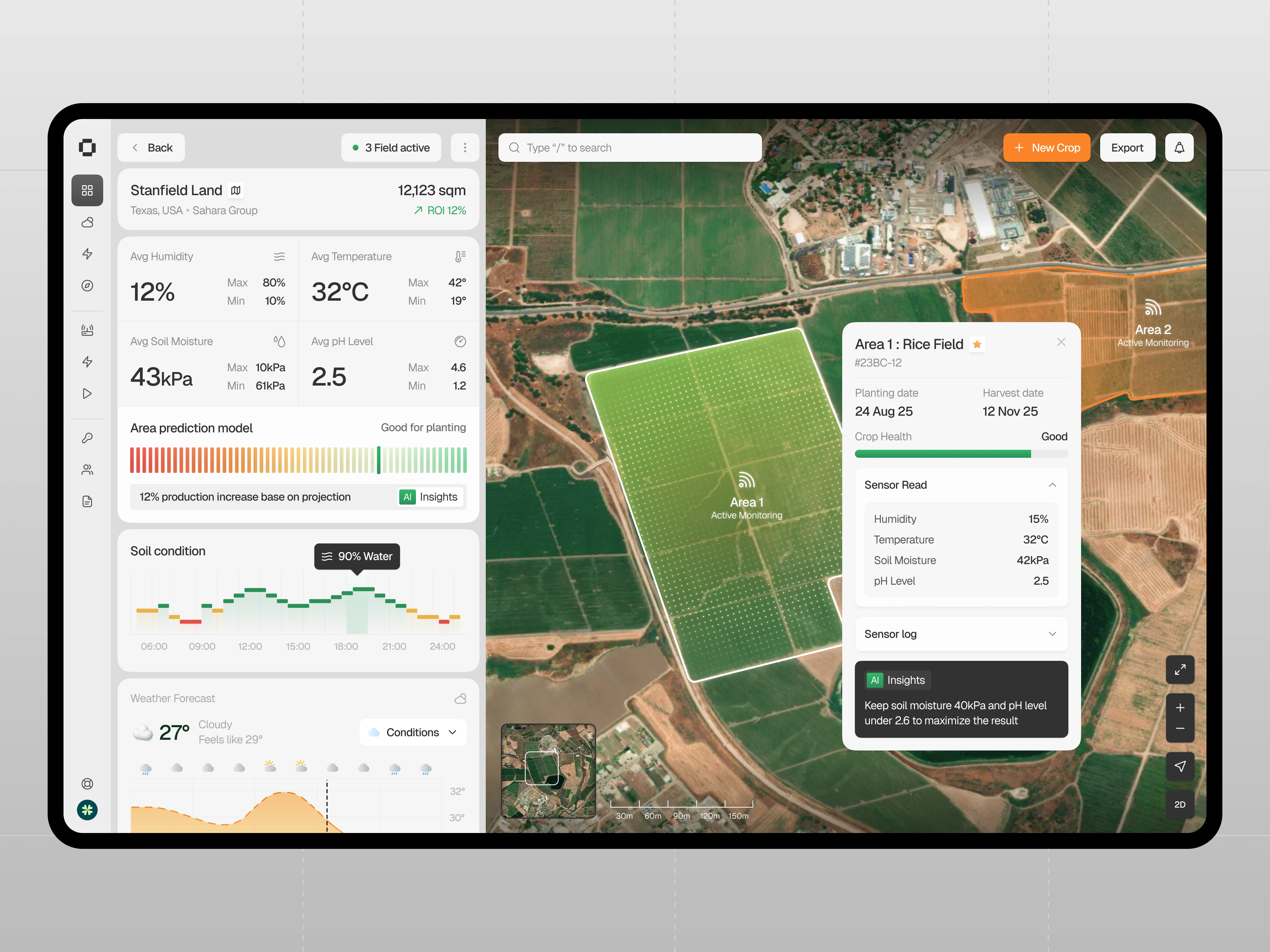 Agricultural teams often work with fragmented systems that separately track soil moisture, humidity, temperature, pH levels, weather patterns, and crop health. This lack of consolidation makes it difficult to evaluate conditions quickly or identify early signs of risk. Without a unified view, decision-making becomes slower, and opportunities to optimize crop growth or prevent issues can be missed.