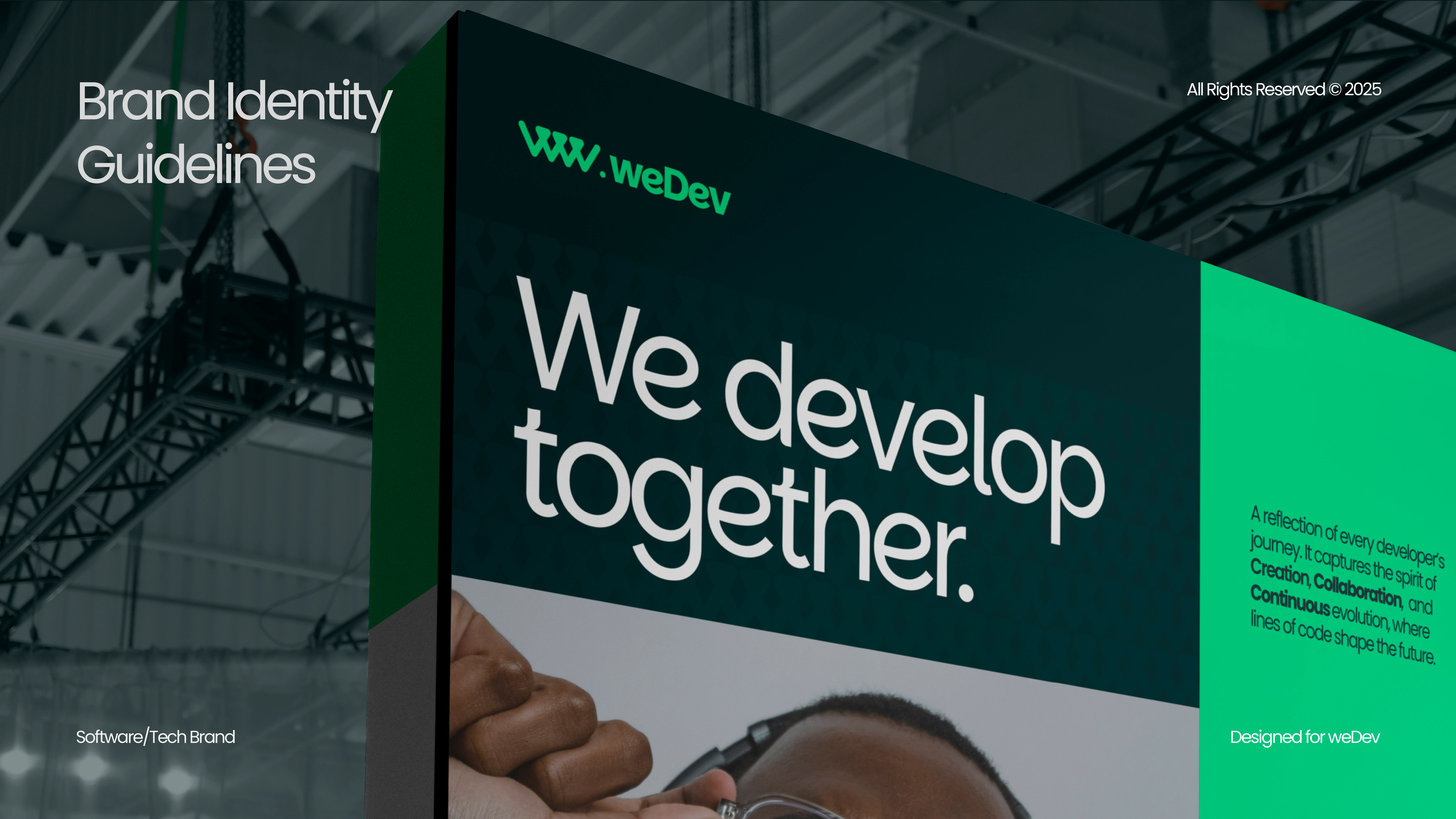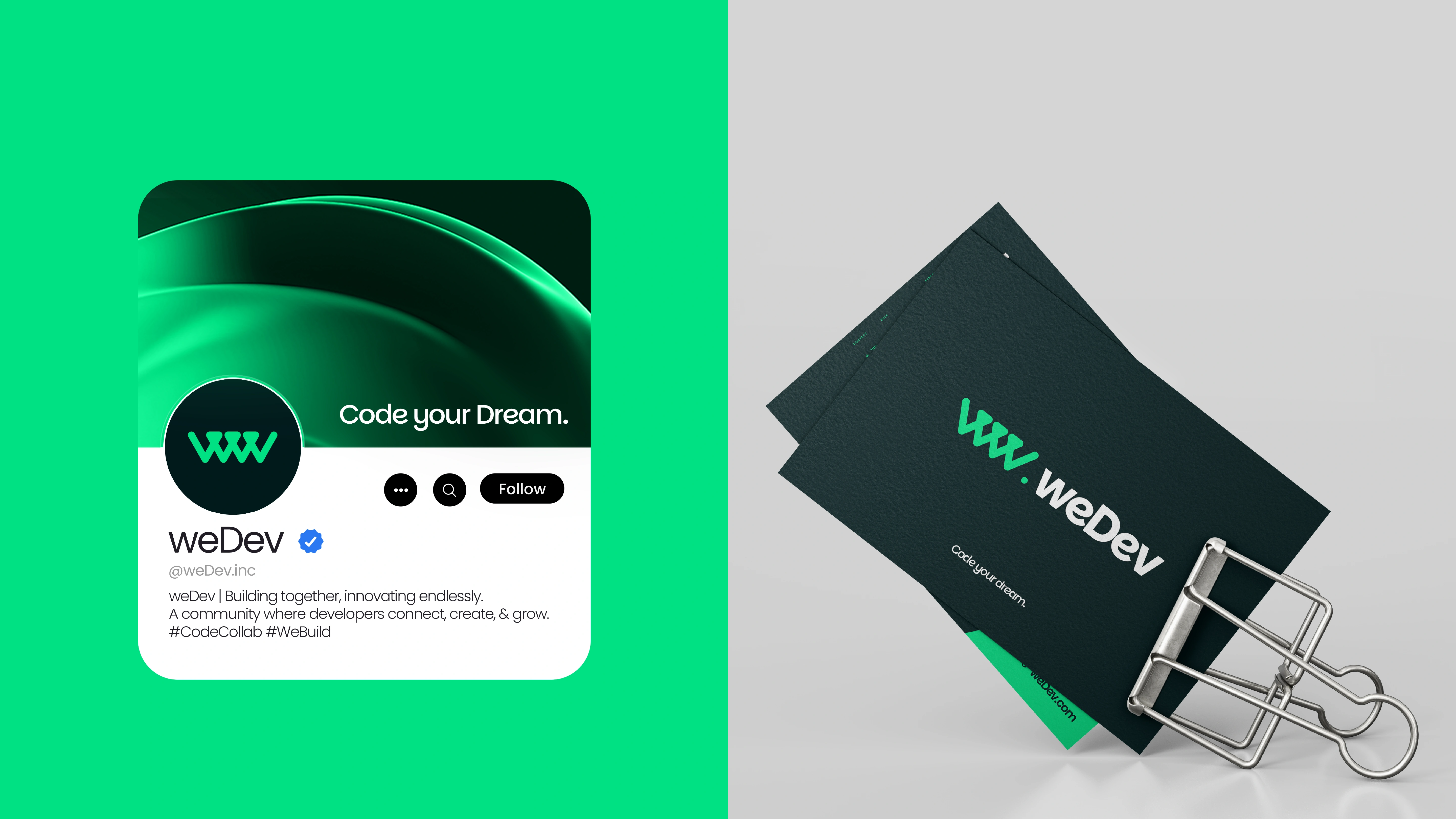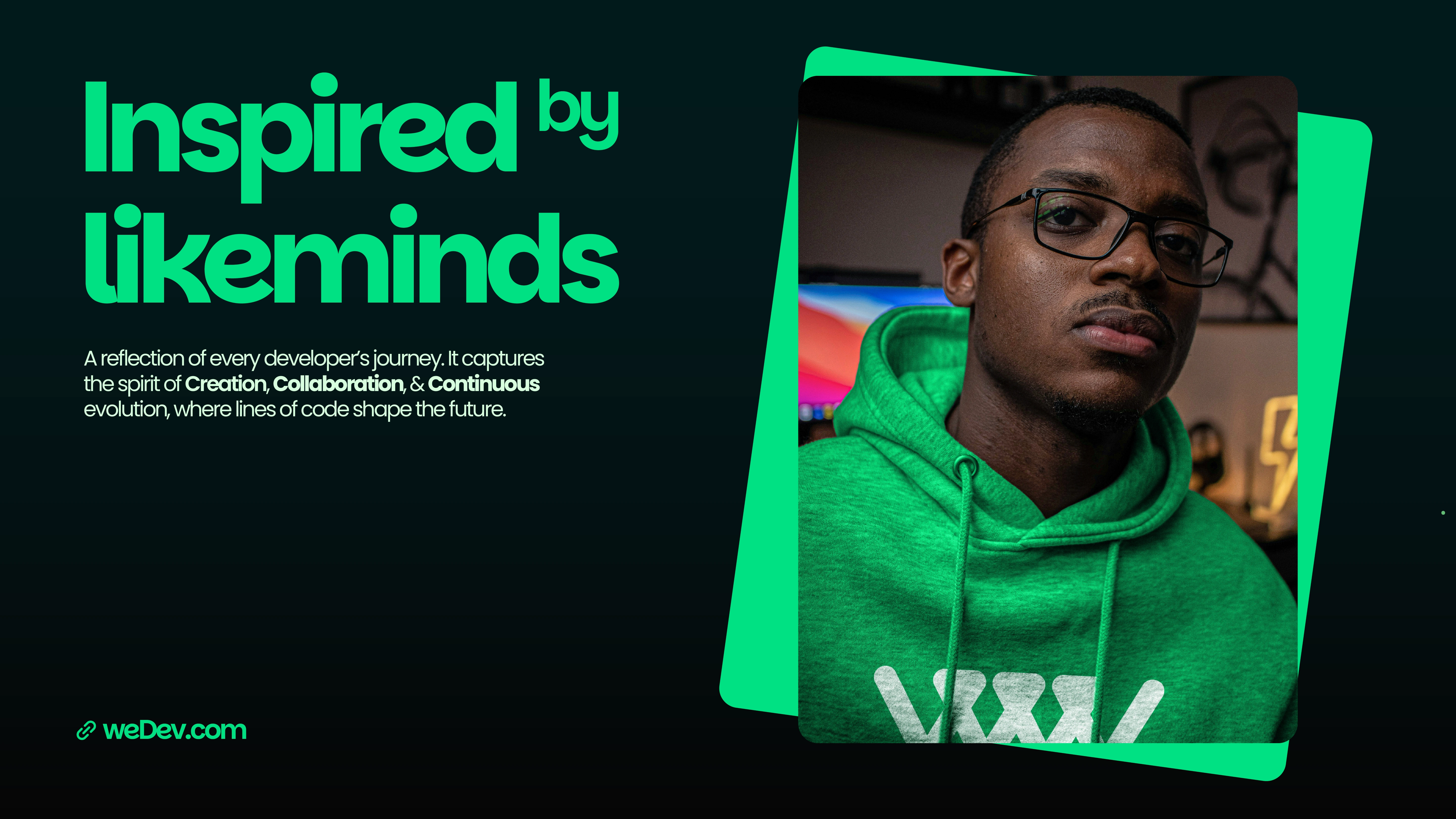 Think weDev when you think platform, think weDev when you think tools, think weDev when you think community support, because whether you are building, learning, or simply contributing, weDev can meet your needs. Our logo tells our story. Elements of code, inversion, and community merge to form this brand that is more than a brand. Builders, thinkers, and creators call us home. We are a space where passion meets precision, turning vision into reality. Here, we do not just write code — we code your dream!