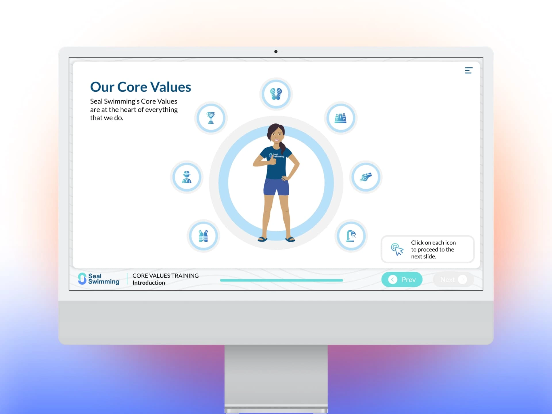 The challenge was creating a course that maintained a professional tone while being visually engaging and digestible for part-time and seasonal staff, many of whom were first-time instructors. It also had to reflect Seal Swimming’s family-friendly brand and high safety standards.
