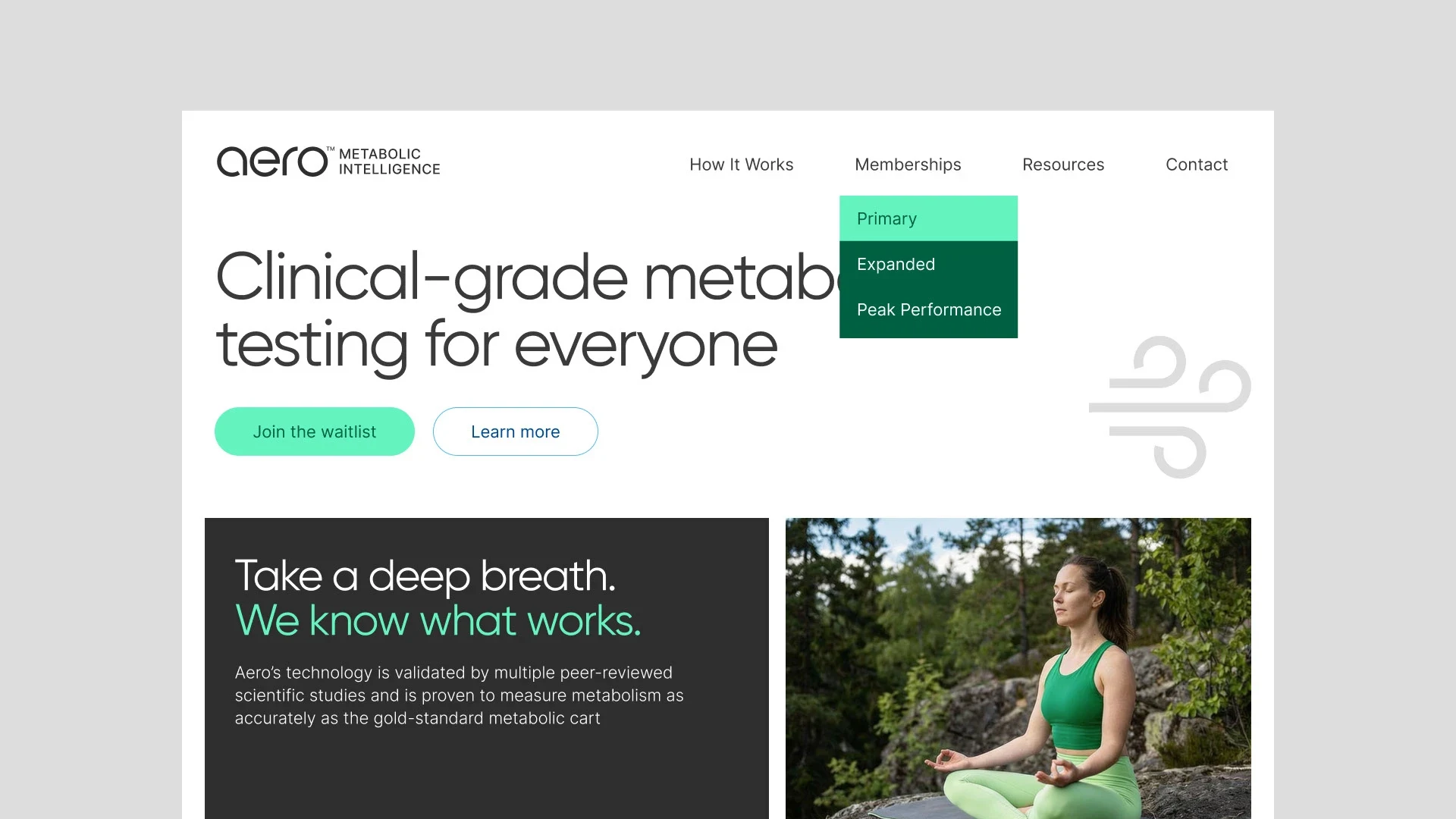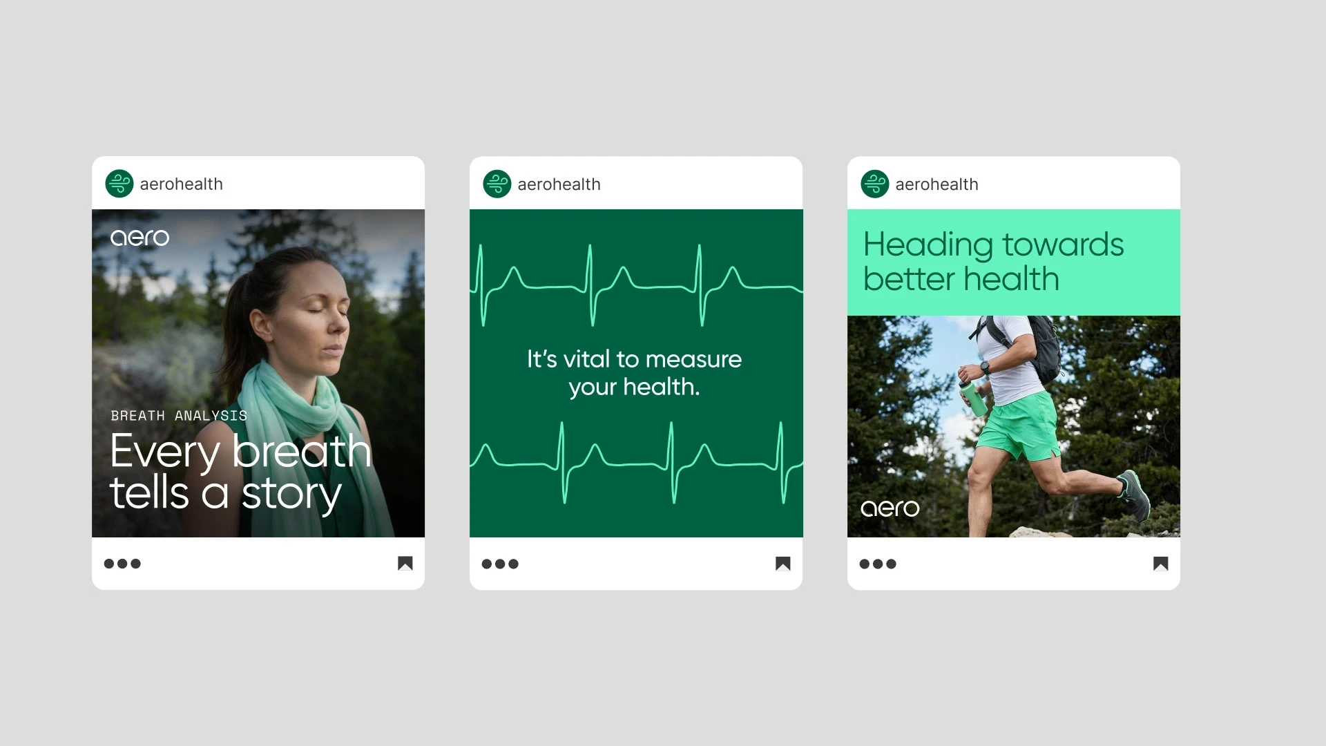 Aero is a breath-analysis company focused on delivering precise, non-invasive health insights through advanced sensor technology. The identity was designed to feel clean, clinical, and trustworthy—reflecting the brand’s scientific foundation and data-driven approach. A custom lowercase wordmark balances technical precision with approachability, using refined geometry and subtle optical adjustments for clarity at any scale. The green color palette was intentionally chosen to evoke a lab-grade, medical environment, reinforcing accuracy, reliability, and calm confidence. The result is a modern, credible identity that positions Aero at the intersection of healthcare, technology, and innovation.