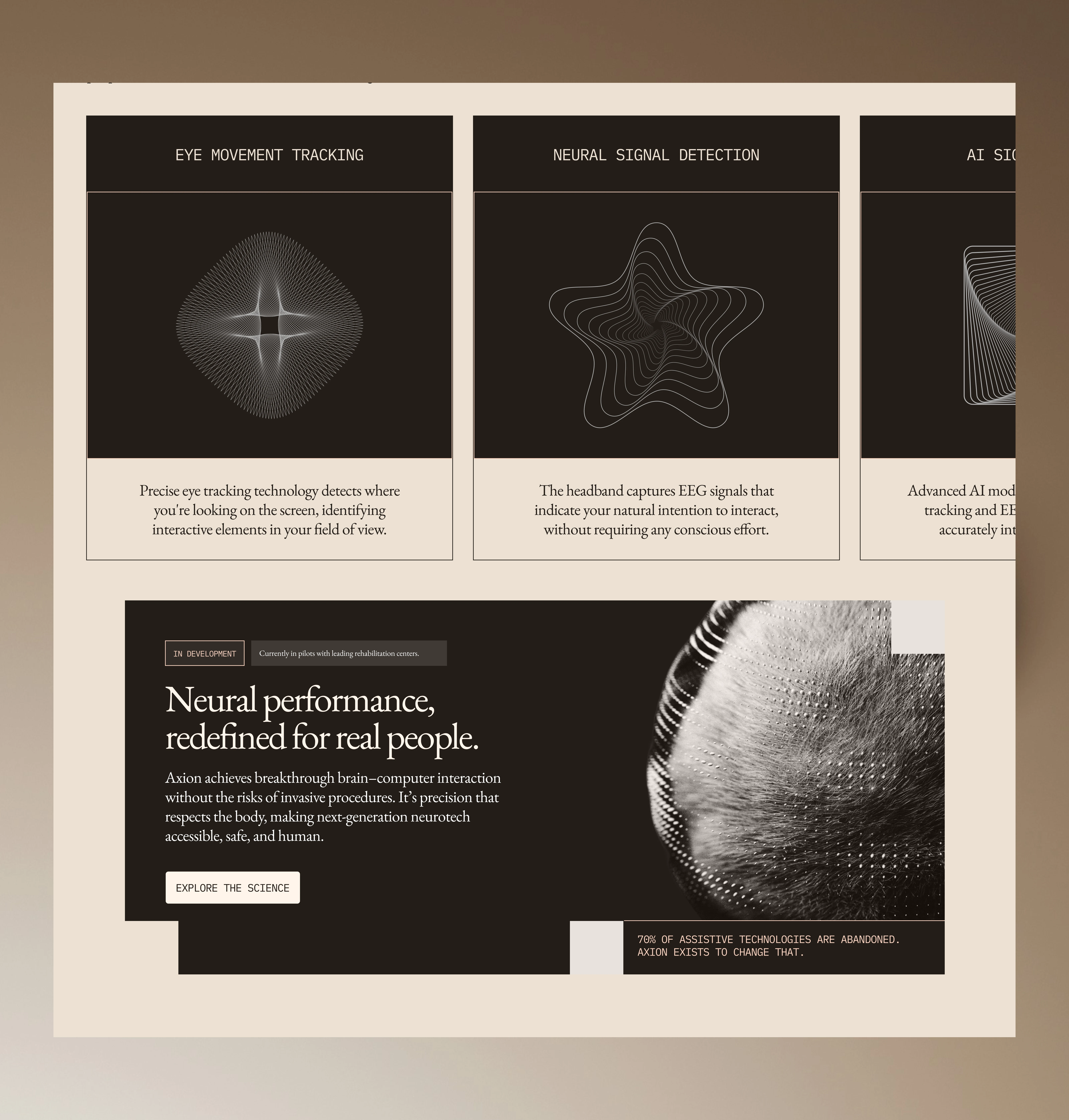 Built at the intersection of neuroscience, machine learning, and assistive technology, Axion Click translates eye movement and EEG signals into seamless digital interaction without implants, surgery, or invasive hardware.