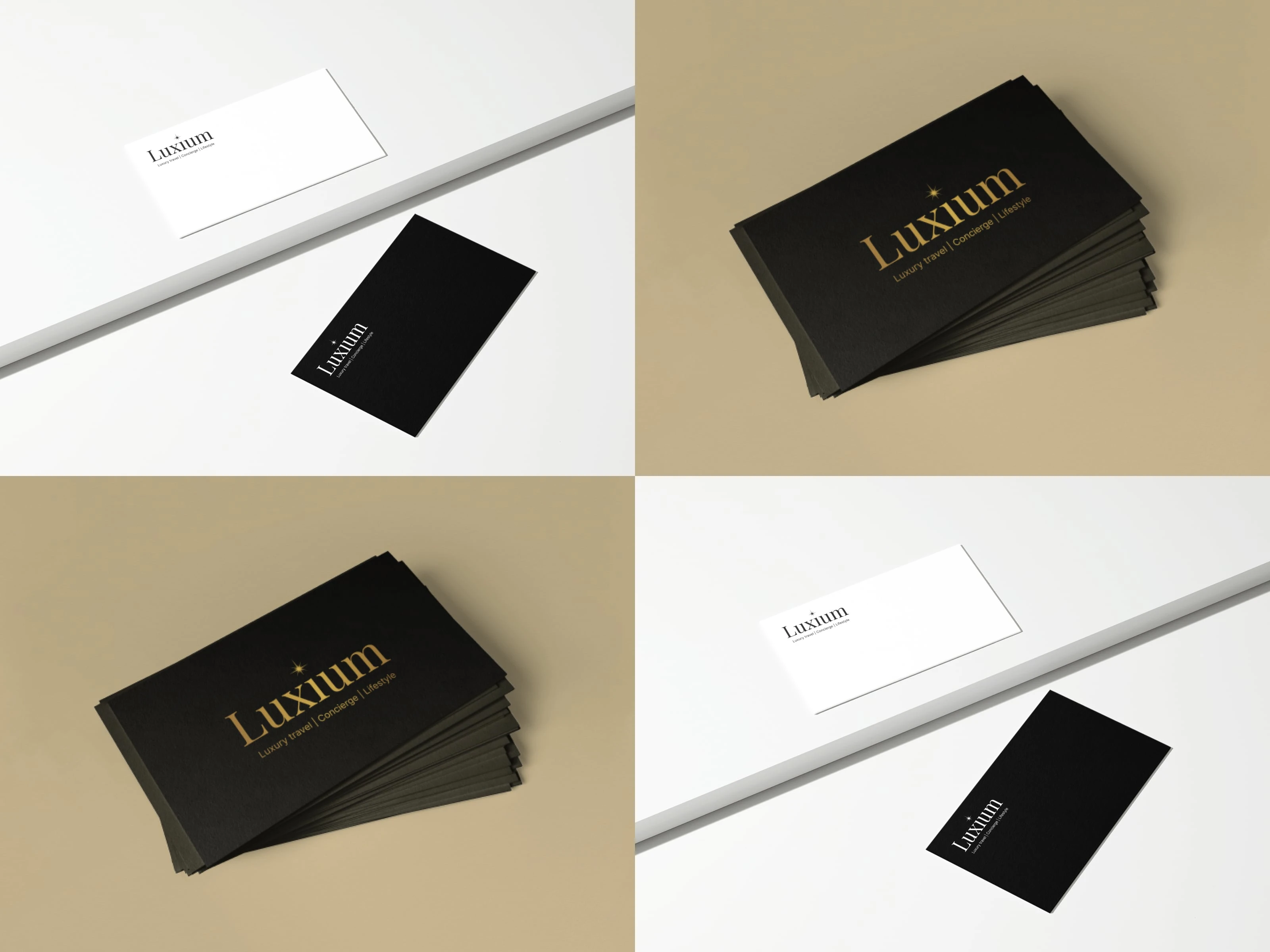 The client, Luxium, provides high-end travel planning and management (concierge services), ensuring a seamless blend of luxury and convenience. The objective was to create a modern visual identity that exudes premium quality and effortlessness, positioning the brand at a high market level to attract affluent clientele.