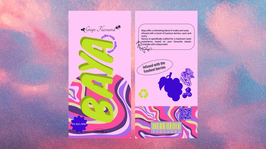 Baya is a vibrant and playful vodka soda brand. That embodies the vibrant spirit of Spain with its playful packaging and refreshing flavors.