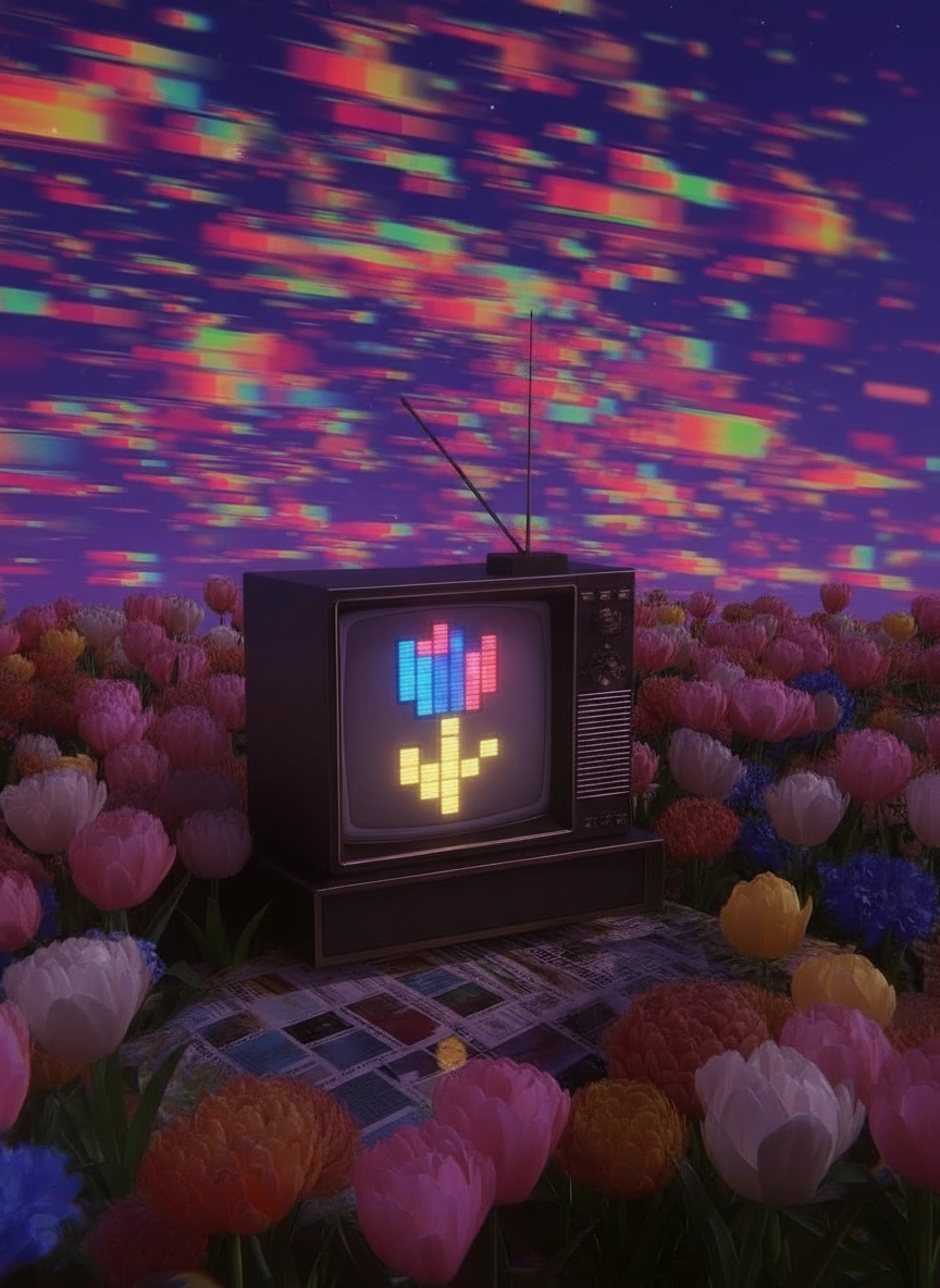 Retro Bloom TV is a curated micro-broadcast that brings back the ceremony of watching — slow, finite, and shared.