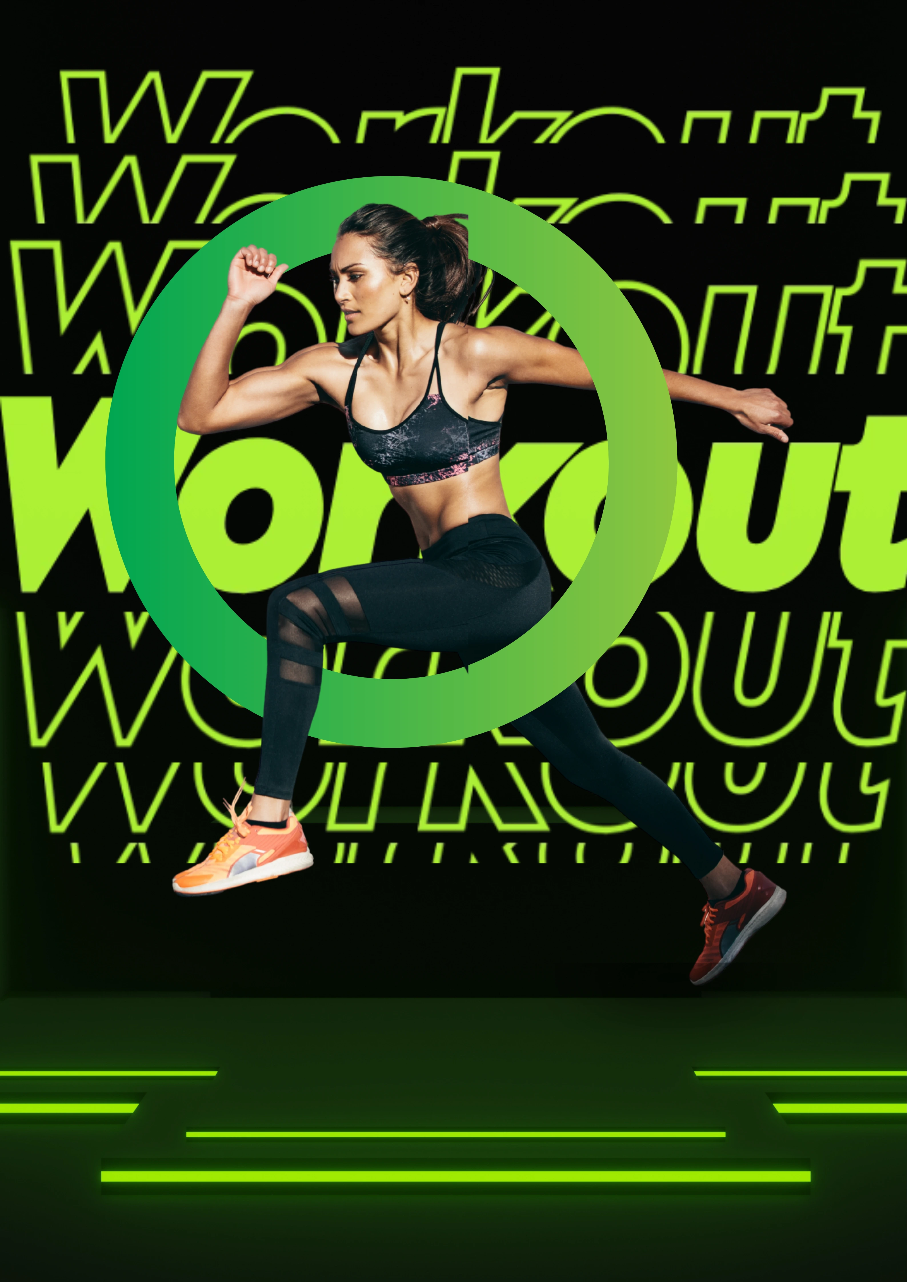 I created this high-energy fitness poster with a modern and powerful design style, perfect for gyms, fitness brands, and personal trainers. The poster uses a bold neon green and black theme with layered typography to highlight the word “Workout”. The athlete image in action conveys strength, motivation, and movement, while the circular overlay adds depth and focus to the central subject.
