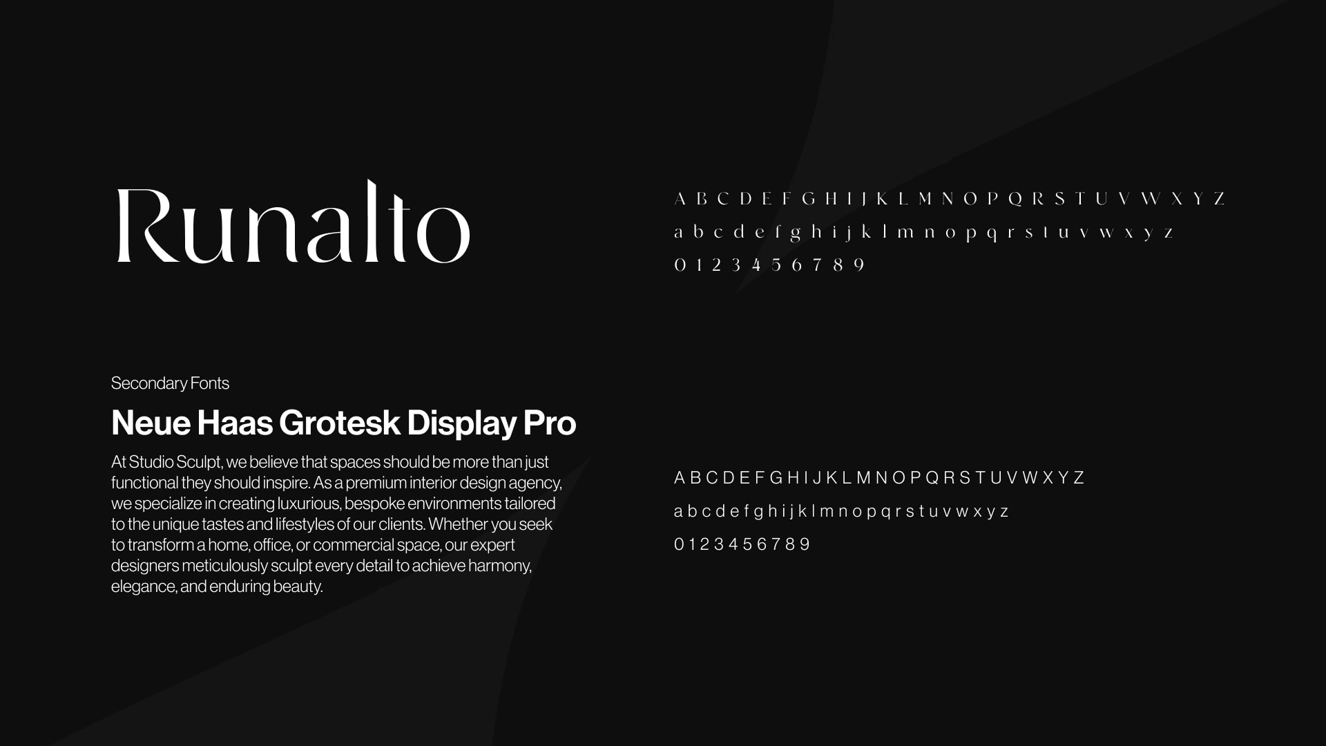 Serif type to stay true to the luxury core of the brand and a Grotesk sans serif that lends itself to a variety of use cases.