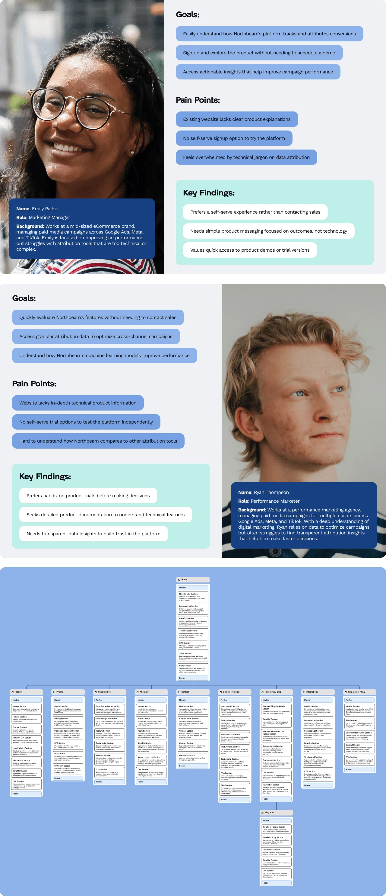 Argzon played a crucial role in transforming our website into a product-driven platform that truly represents Northbeam's innovative technology. From the initial research phase to the final UI design, he led the entire process, creating the sitemap, wireframes, and high-fidelity designs that streamlined the user journey and improved conversions. His ability to combine modern aesthetics with user-centered design helped us deliver a more engaging experience for marketing professionals, making self-serve conversions easier than ever."