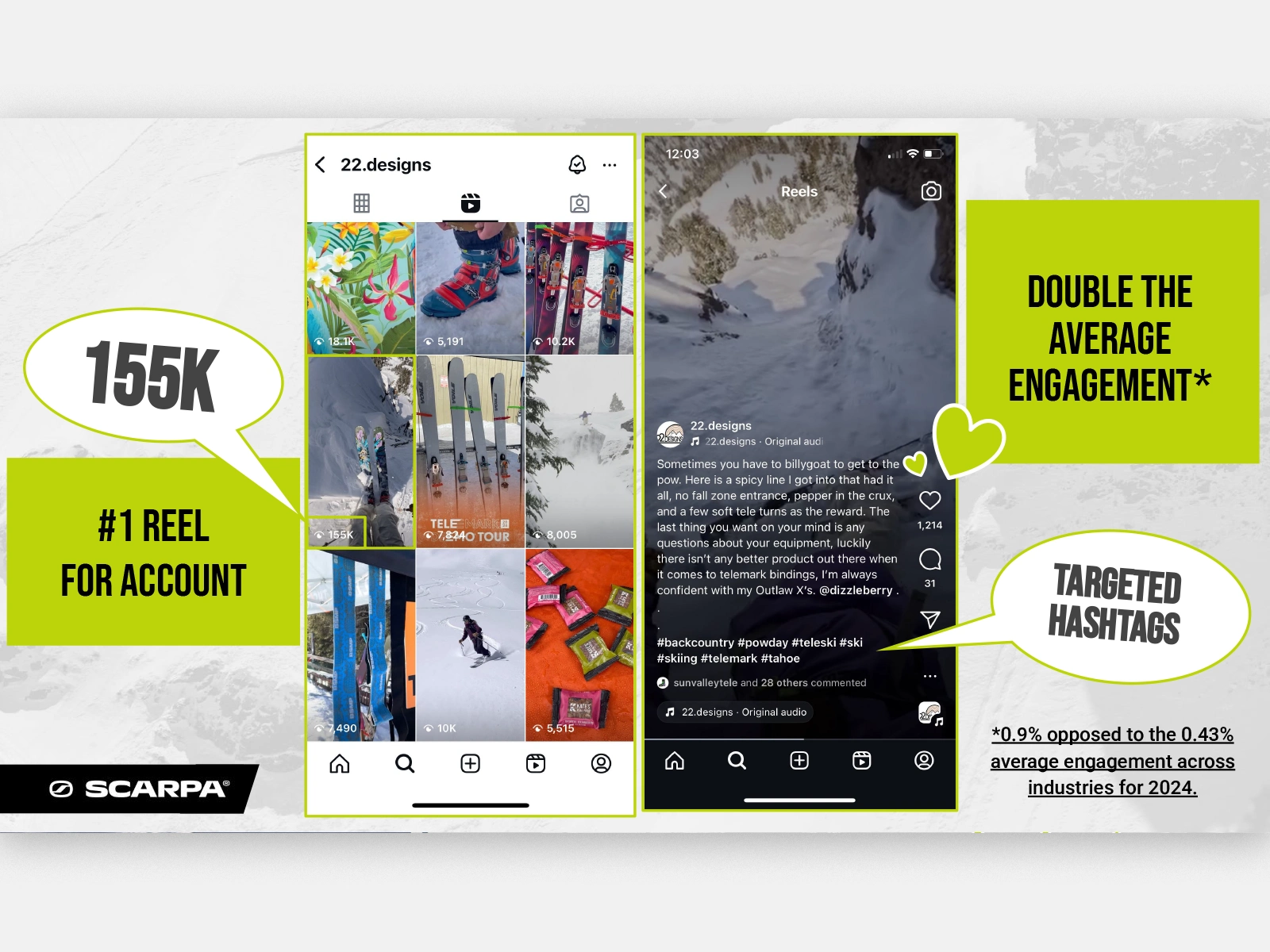 Professional telemark skier Ty Dayberry, reached out for help showing his sponsor Scarpa why they should help him join the pilgrimage. We put together an engagement report showing what Scarpa's ROI would be if they got him out to Japan.