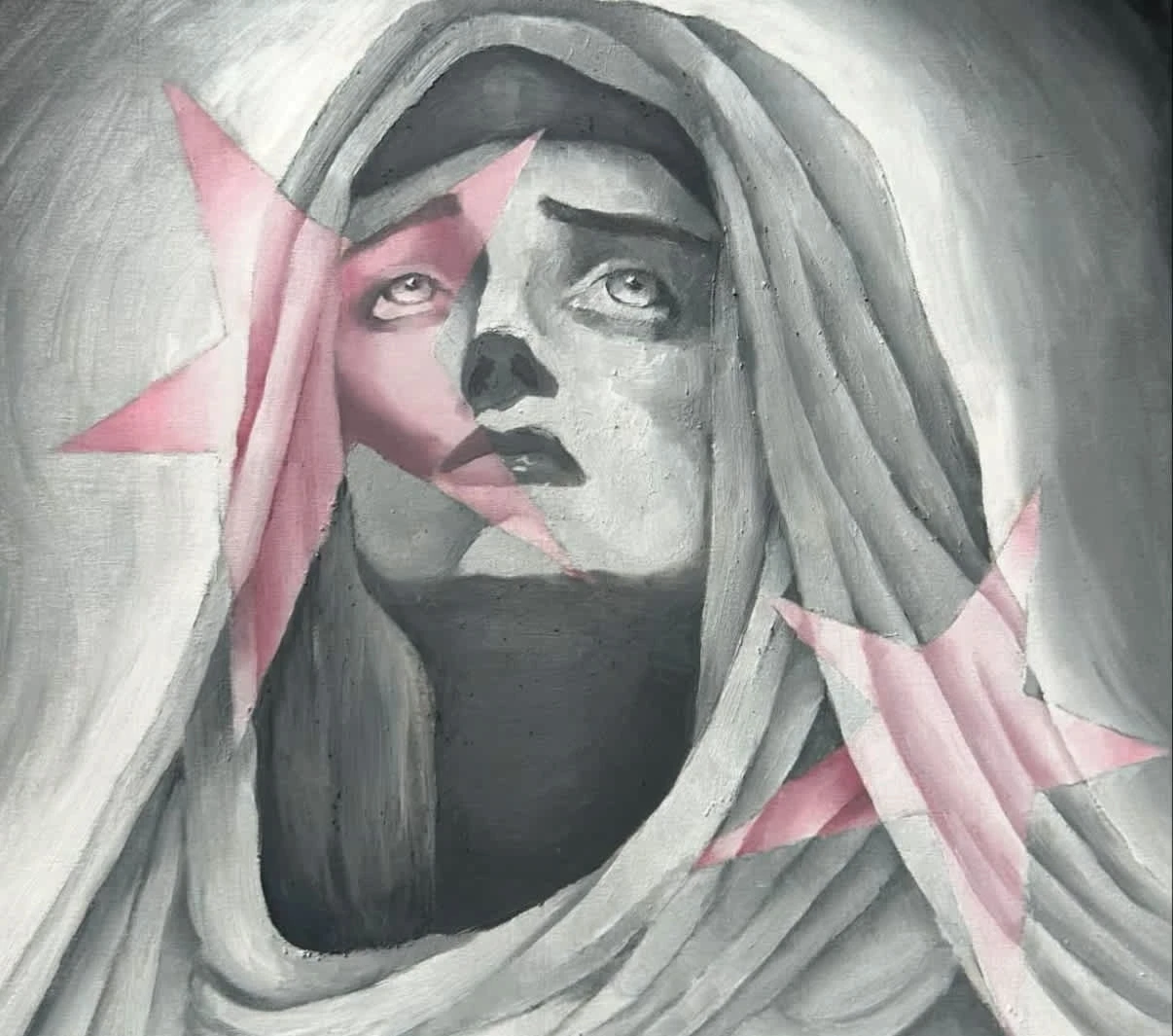 The striking contract symbolizes the clash between purity and disillusion. It is a vision of the human spirit searching for meaning amid chaos.