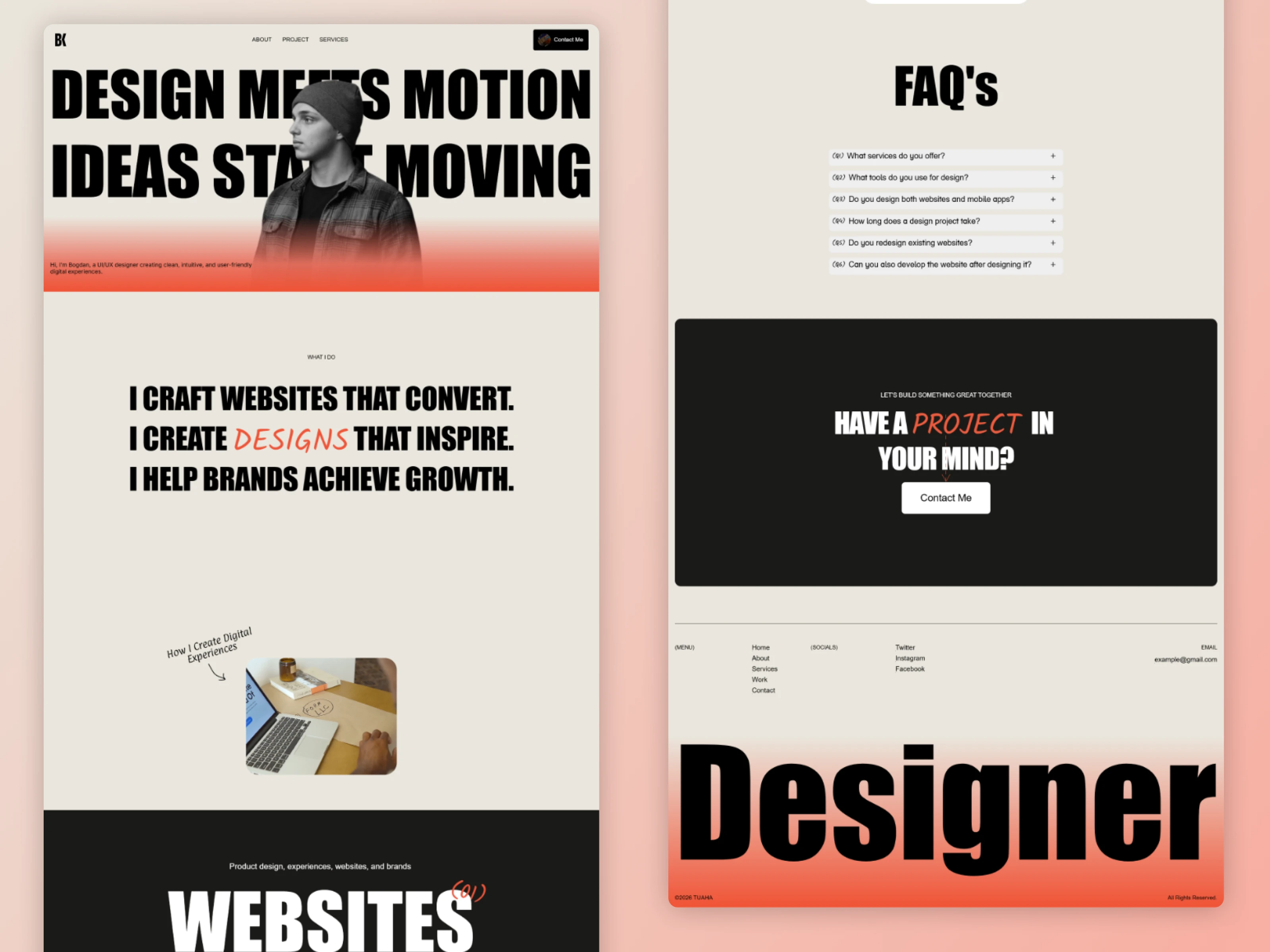 Developed in Framer, the website uses CMS functionality to manage projects, case studies, and content efficiently. Clean layouts, strong typography, and smooth transitions were implemented to create a seamless browsing experience across all devices.