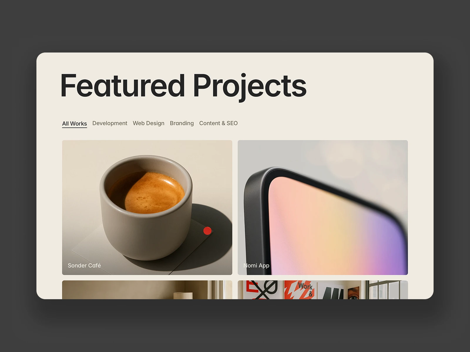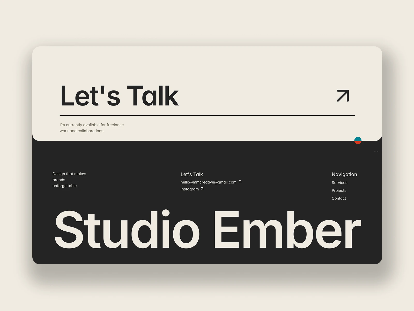 Studio Ember is a modern portfolio template built in Framer, designed for freelancers, creative studios, and agencies who want to showcase their work in a bold yet minimal way.