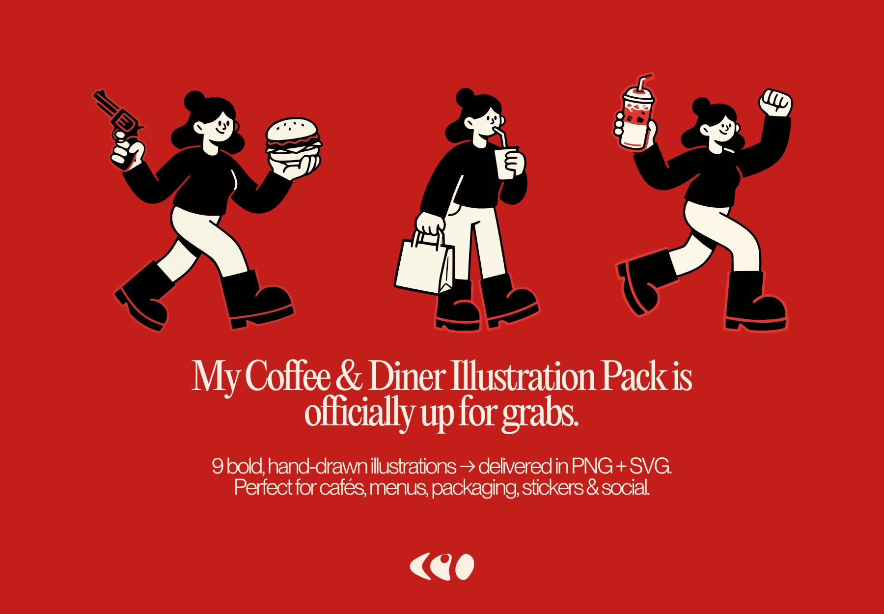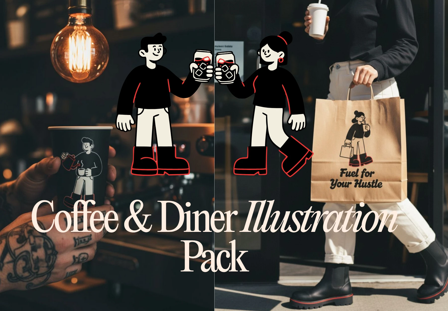 Created a Coffee & Diner Illustration Pack with 9 original illustrations.