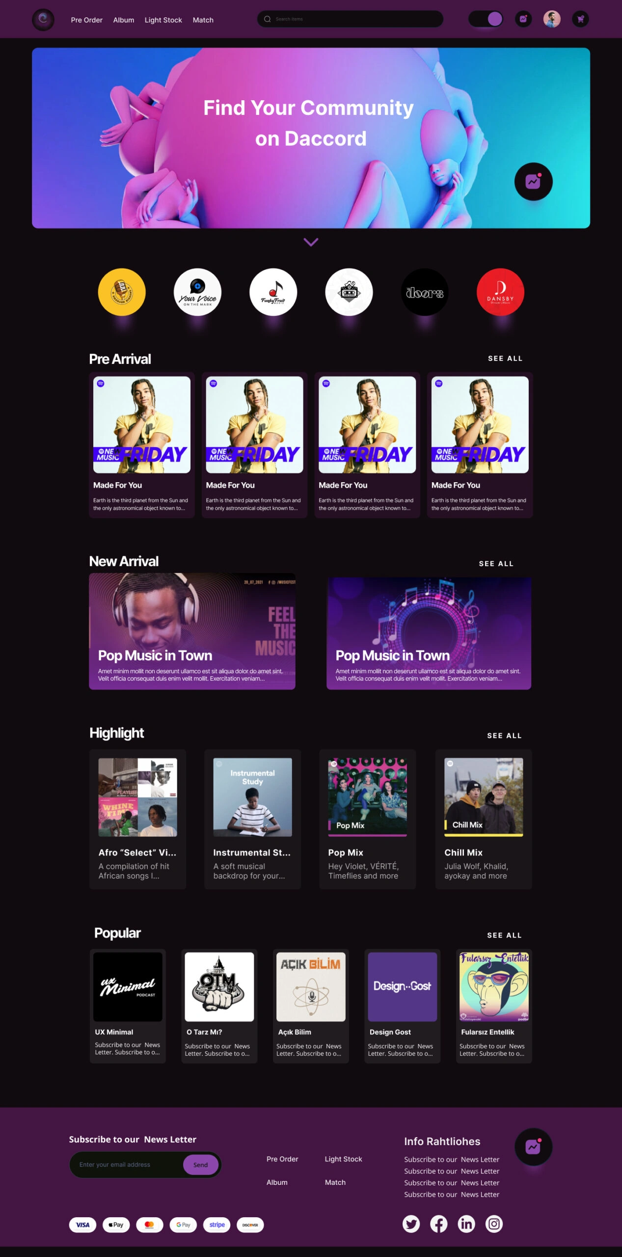 Solution: To meet this challenge, we meticulously designed the UI and UX of the platform, ensuring an intuitive and seamless browsing and purchasing experience for users. By incorporating modern and visually appealing elements, we created a vibrant and attractive platform for PopTunes to sell their music products.