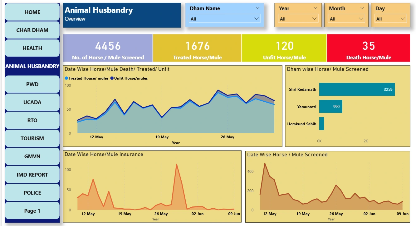 Designed and developed an interactive Power BI dashboard for Char Dham Yatra data analysis.