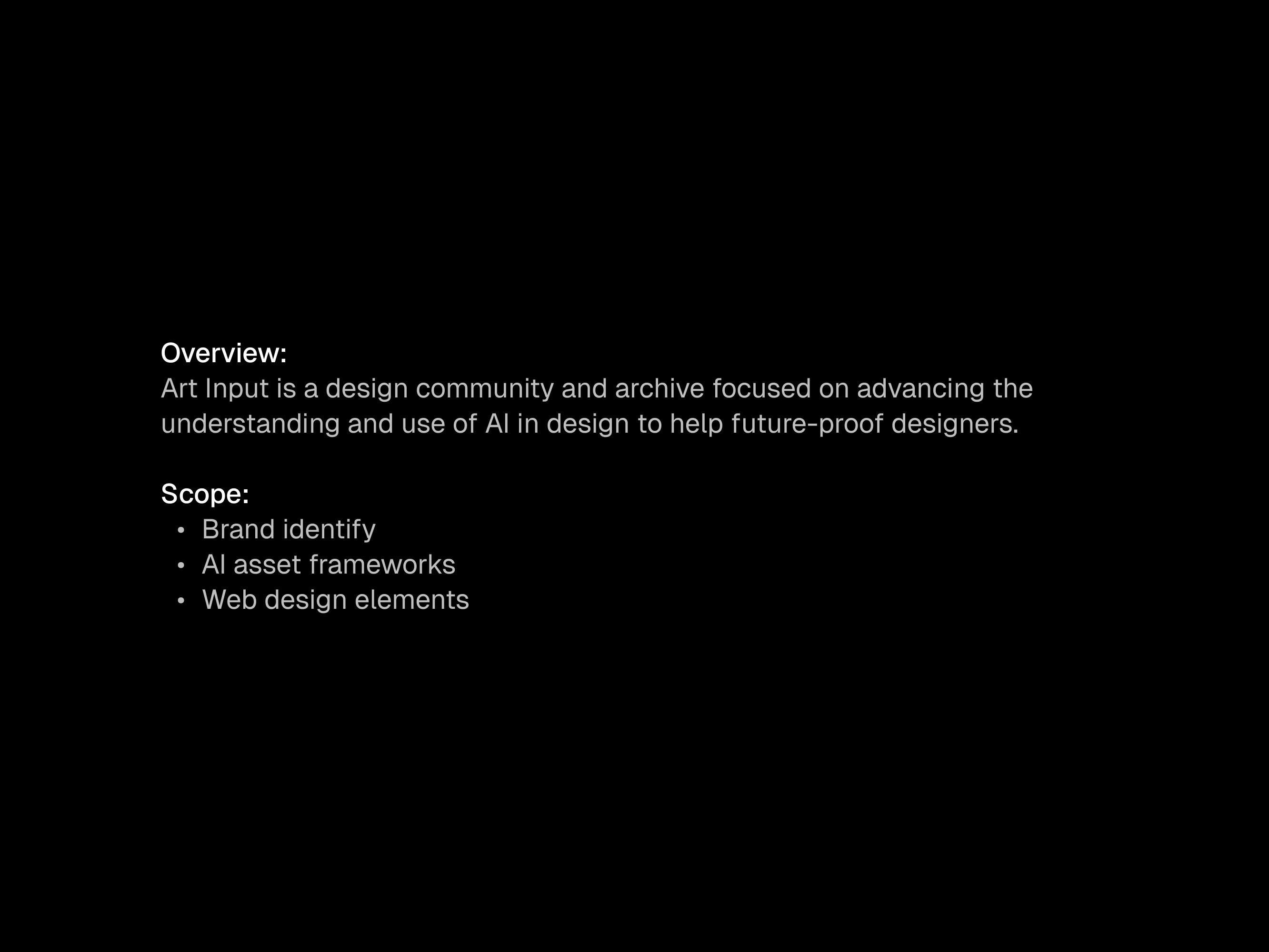 Art Input is a design community and archive focused on advancing the understanding and use of AI in design to help future-proof designers.