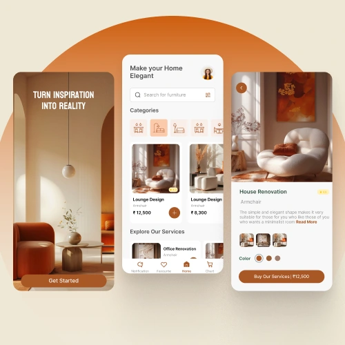 I designed an interactive home interior design mobile app with sophisticated UI elements, ensuring seamless user interaction.