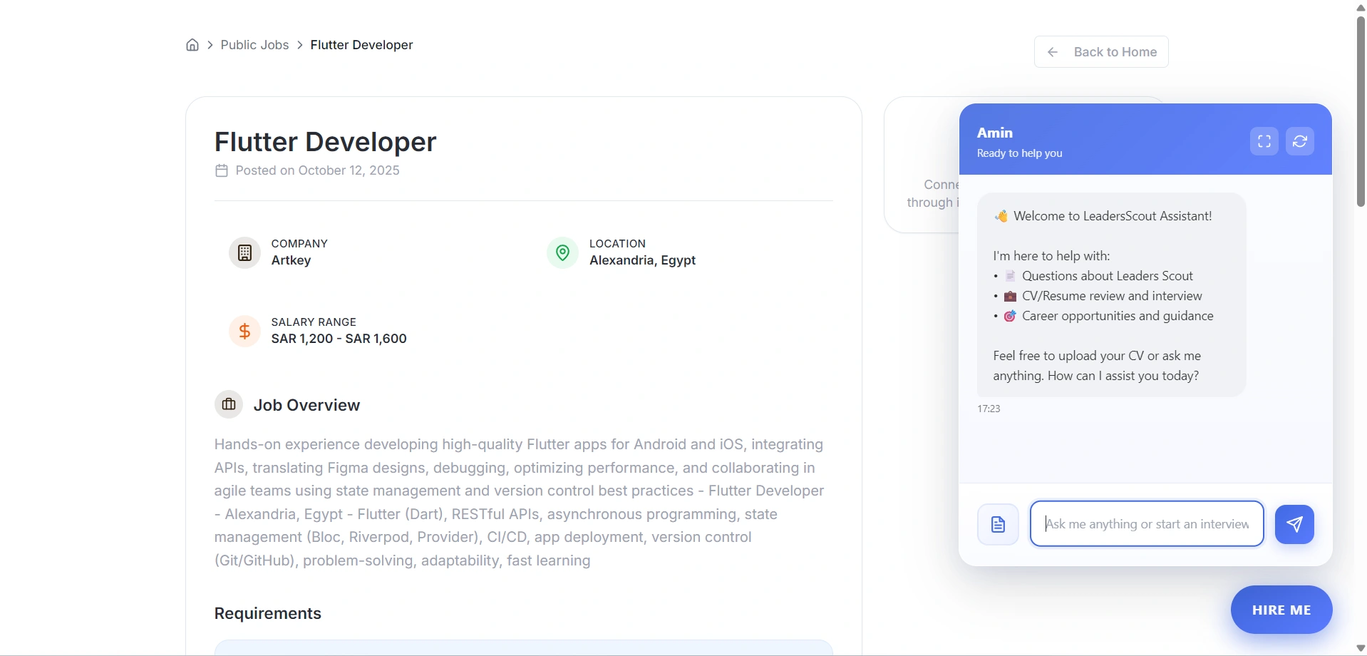 It starts with candidates uploading their CVs directly through chat. Our AI instantly builds a customized interview tailored to each profile. Every CV and answer is embedded into a powerful AI knowledge base, ready to be matched against any new job you post.
