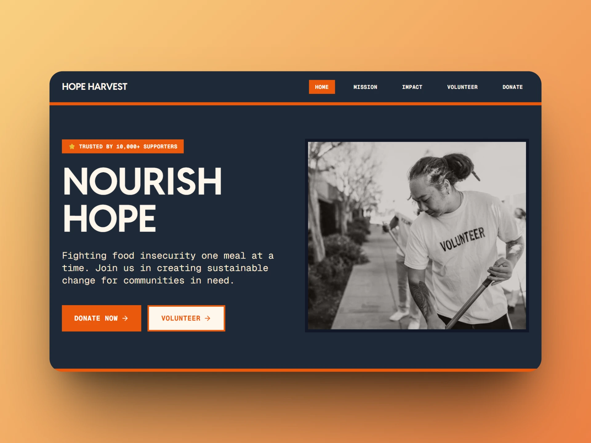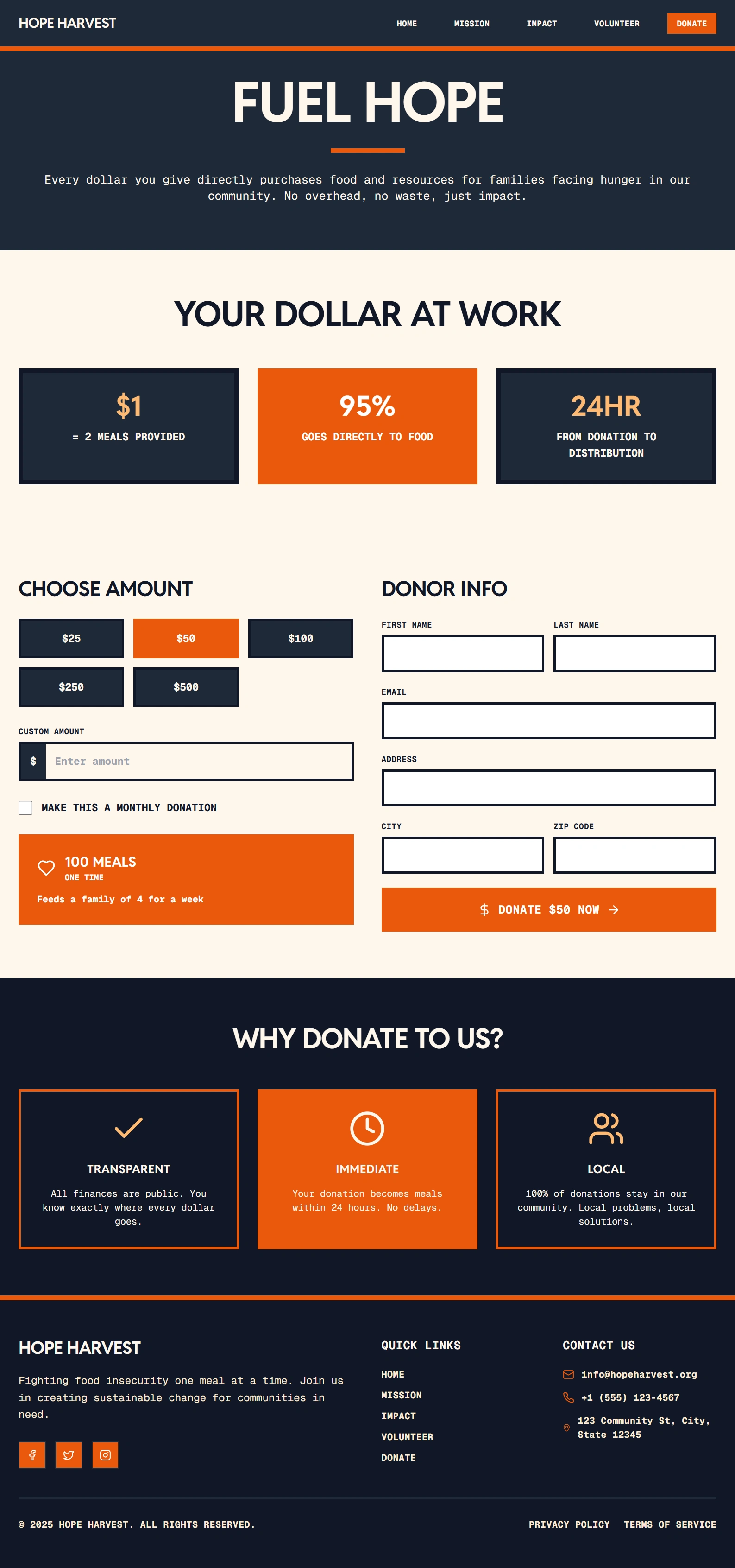 Full charity/NGO website made in Bolt.new. Neobrutalist design style. Clean, unique, eye-catching design complete with the following pages: home, mission, impact, volunteer & donate.