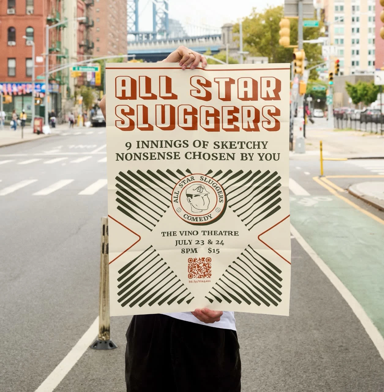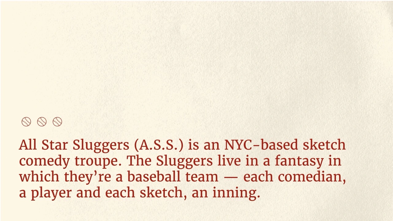 Irreverent baseball-themed branding for a sketch group whose new identity helped sell out their first two shows at The Vino Theater in Williamsburg, Brooklyn.