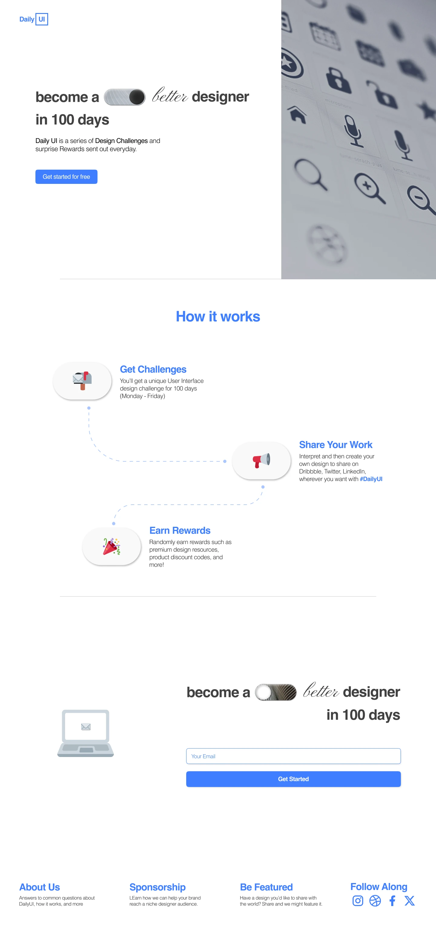 Redesigned the DailyUI website for Day 100! Learned key UI practices, building from scratch, and improving existing designs.