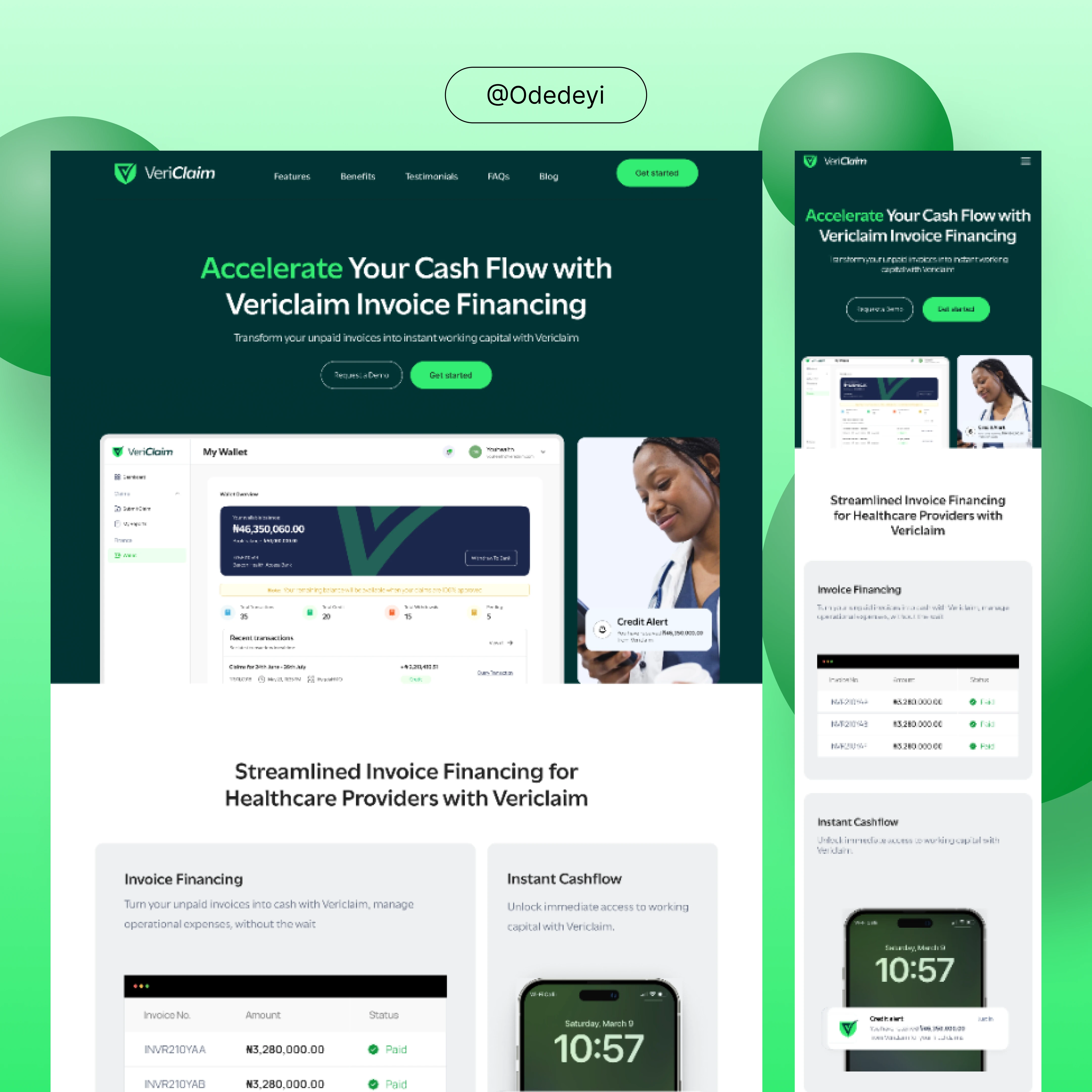 Vericlaim is a new product by WellaHealth, designed to provide efficient invoice financing solutions for healthcare providers. I was tasked with developing a high-converting landing page to introduce Vericlaim, clearly communicate its benefits, and drive user engagement.