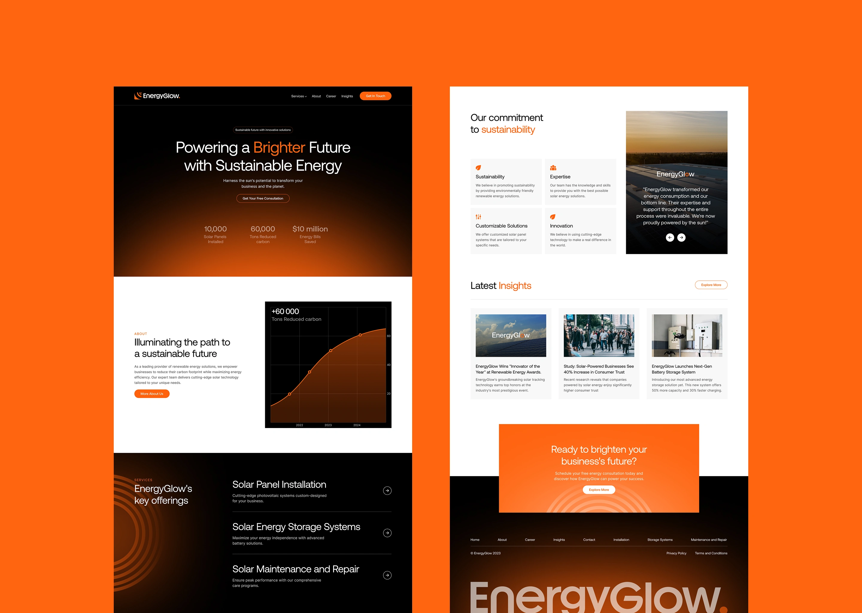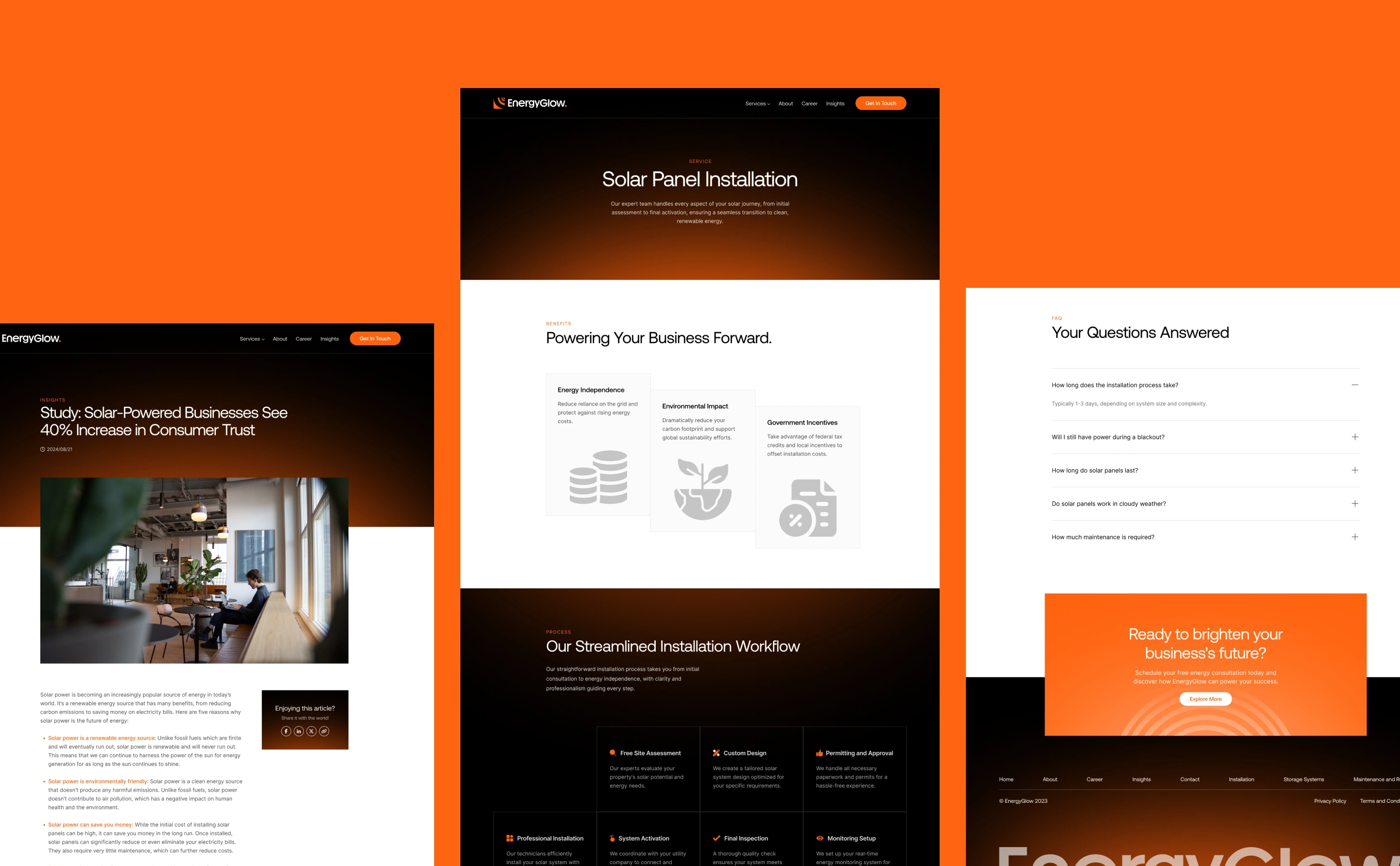 A sleek, modern redesign with a custom Figma layout and a WordPress build optimized for speed and usability. The new website features smoother navigation, improved performance, and a professional look that instills trust. The outcome is a beautiful, fast, and easy-to-use website that better represents EnergyGlow’s brand, drives higher engagement, and supports stronger conversions.