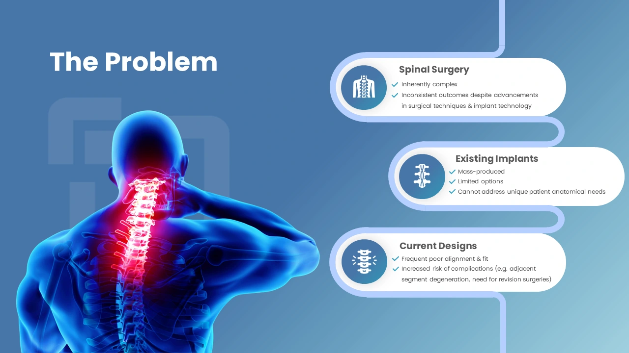 This presentation deck was strategically crafted to highlight Nivalon Medical’s unique value proposition, including their cutting-edge medical technology, patient-centered approach, and commitment to elevating global standards in spinal healthcare. By combining clean layouts, data-driven insights, and strong visual storytelling, the deck clearly communicated how Nivalon’s innovations reduce complications, support faster recovery, and empower surgeons with more effective treatment options.