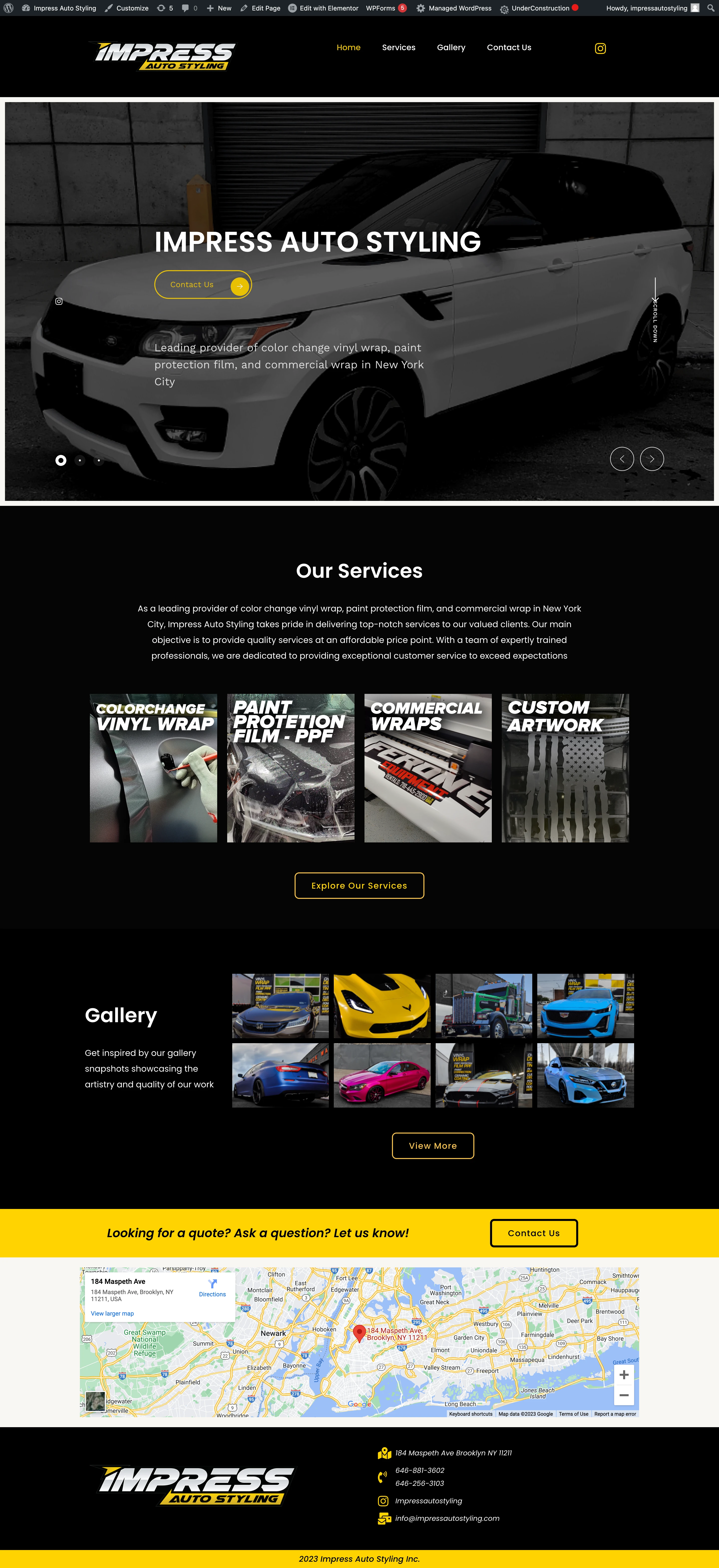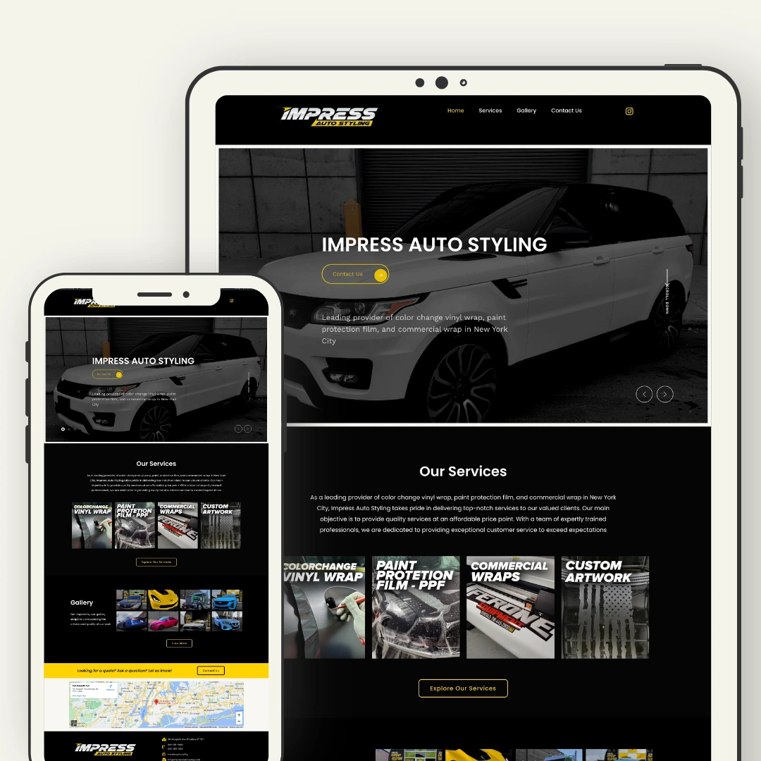 This project involved designing a modern, user-focused website for Impress Auto Styling, a Brooklyn-based auto customization business specializing in vinyl wraps, paint protection film (PPF), commercial vehicle wraps, and custom artwork. The goal was to create a high-impact online presence that reflects the brand’s premium quality and urban style while driving customer engagement through visuals and intuitive navigation.