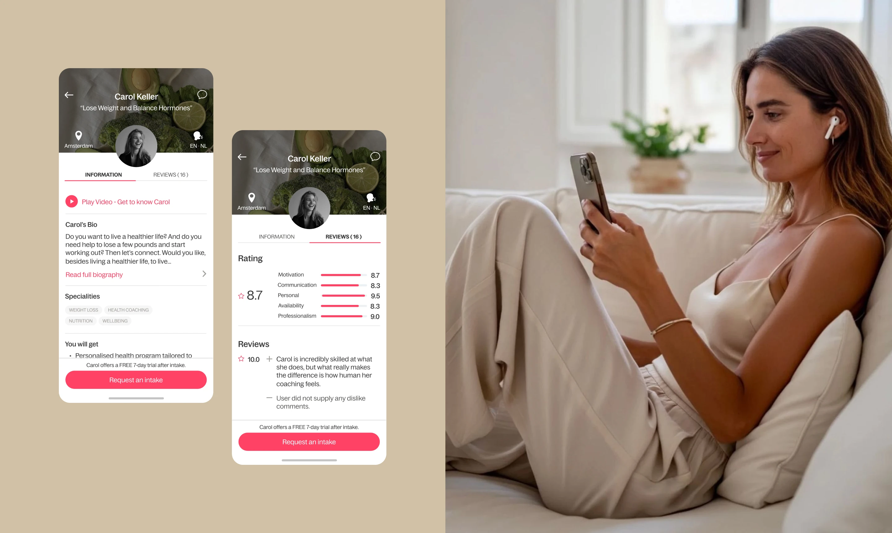 Beyond basic filters, users need a sense of personality to commit to a coach. By integrating intro videos and community reviews, I transformed a clinical directory into a confident, human-centric selection journey.