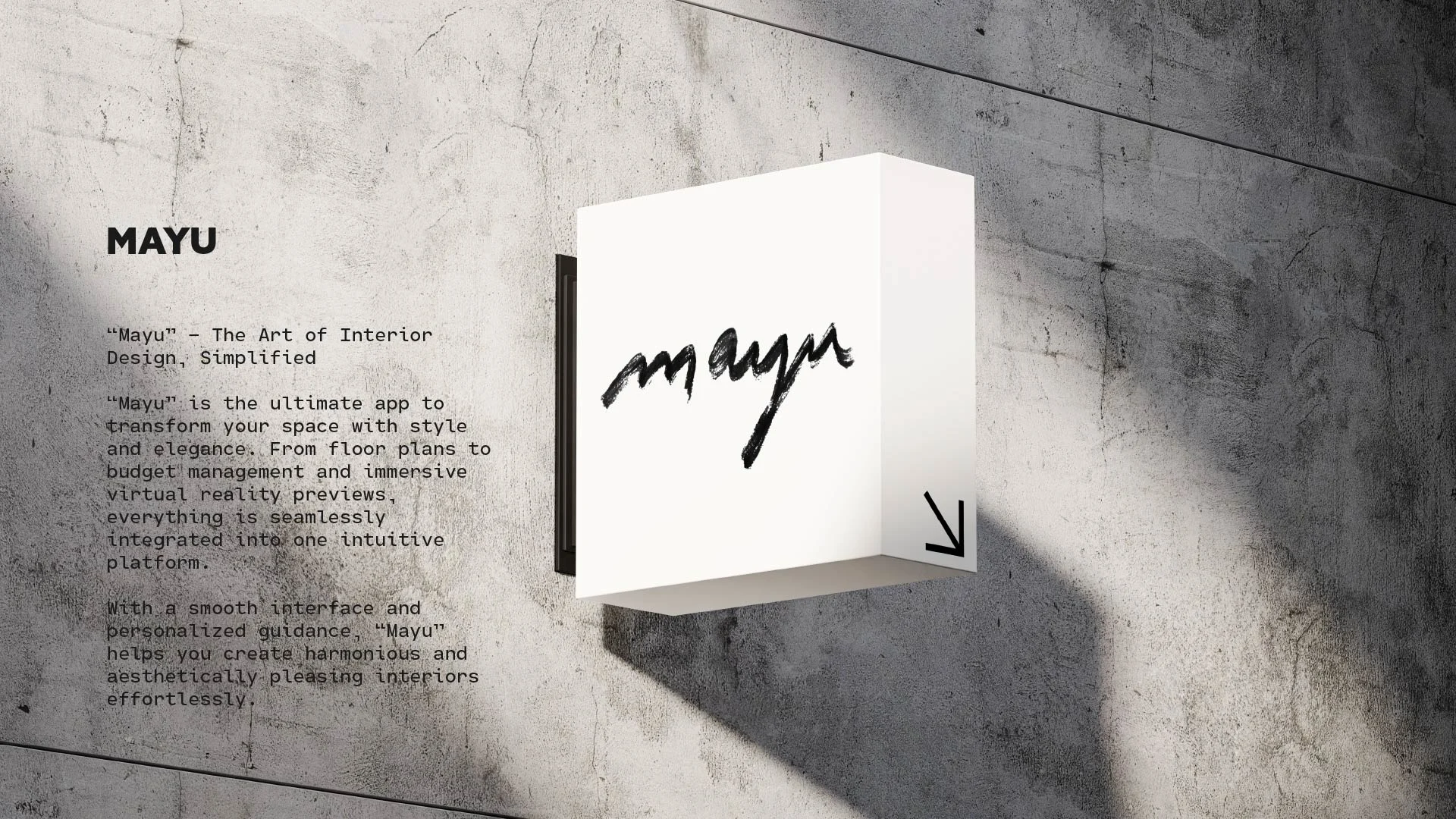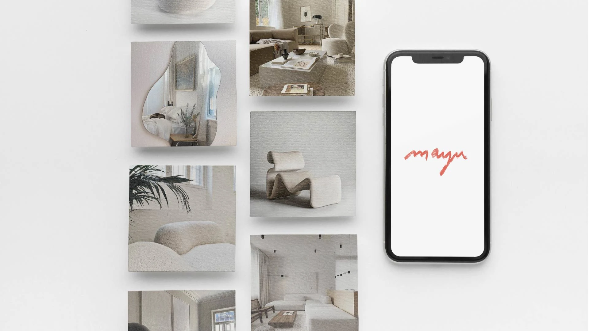Mayu is a conceptual interior design app that helps users visualize and test furniture layouts in real time. The creative goal was to merge usability with aesthetic clarity, appealing to design lovers while keeping the experience intuitive. The identity blends softness, simplicity, and tech-forward confidence.