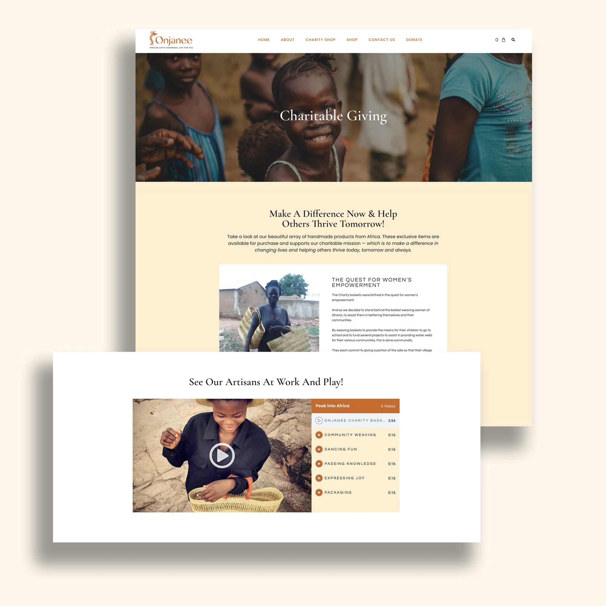 Aside from the regular shop of luxury hand-made home goods, the website had to include a shop that would directly support the charitable mission to help men, women, and children that are in need of help. the charitable Givingshop page also gives visitors a sneak peak into the lives of the African Artisans.