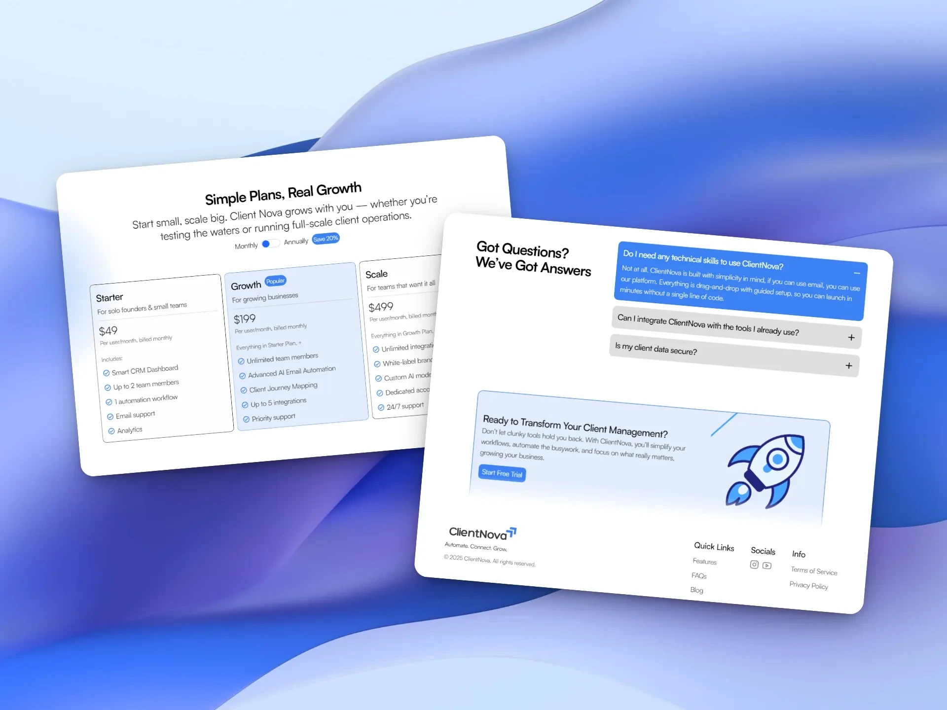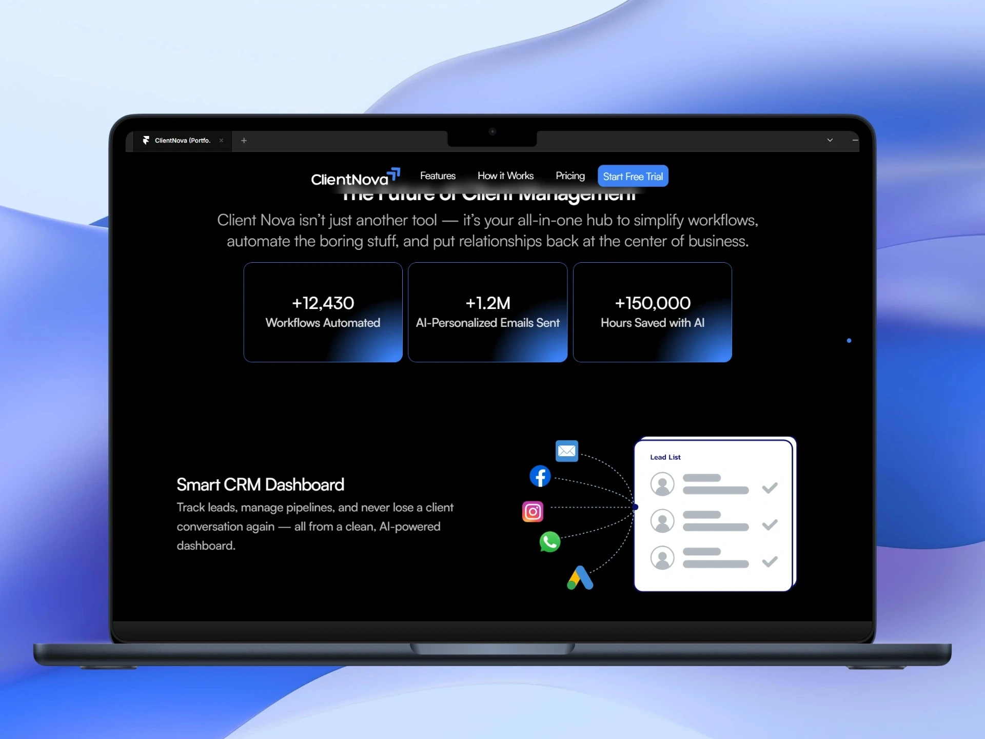 Client Nova is a modern SaaS website template built for startups, CRMs, AI platforms, and B2B software businesses. Designed in Framer, it blends clean layouts, smooth animations, and conversion-focused sections to help you showcase your product and convert visitors into customers.