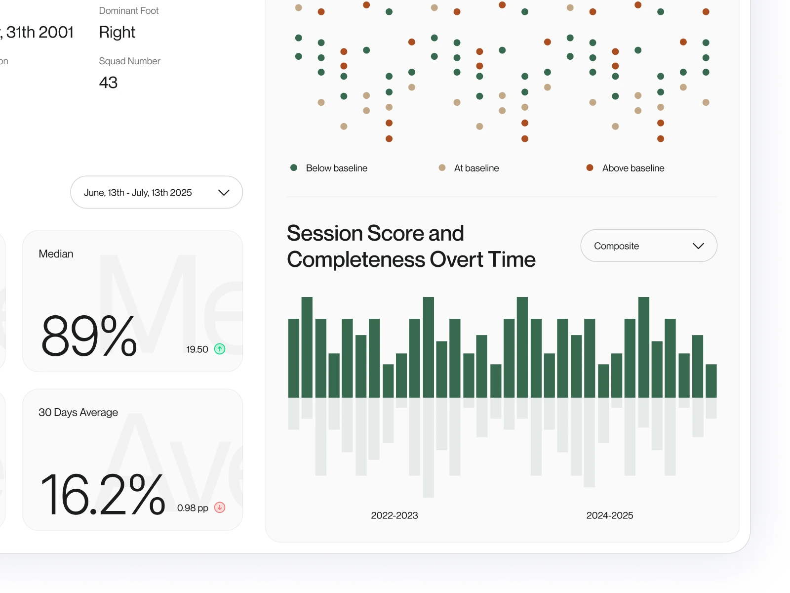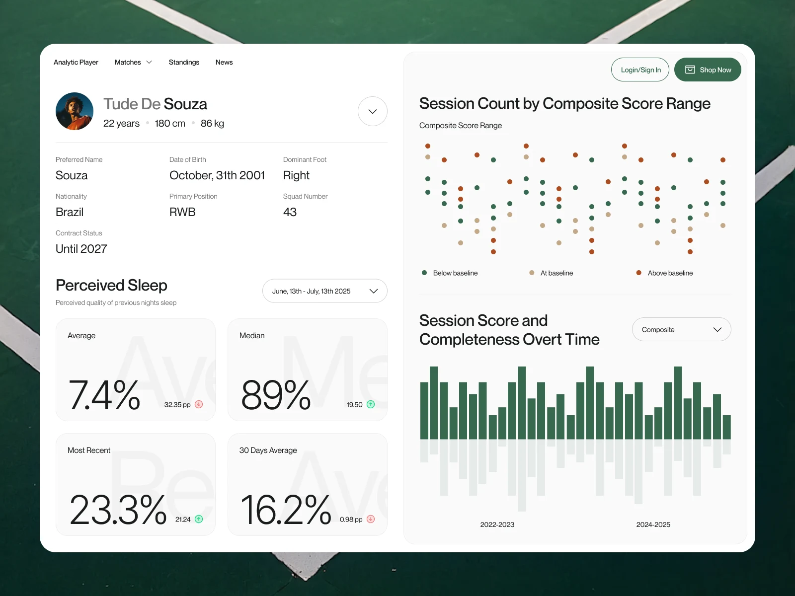 Perfect for coaches, analysts, or even the players themselves to monitor progress, identify strengths, and track improvements over time. Every card and chart is crafted with usability and clarity in mind, making data both beautiful and actionable.