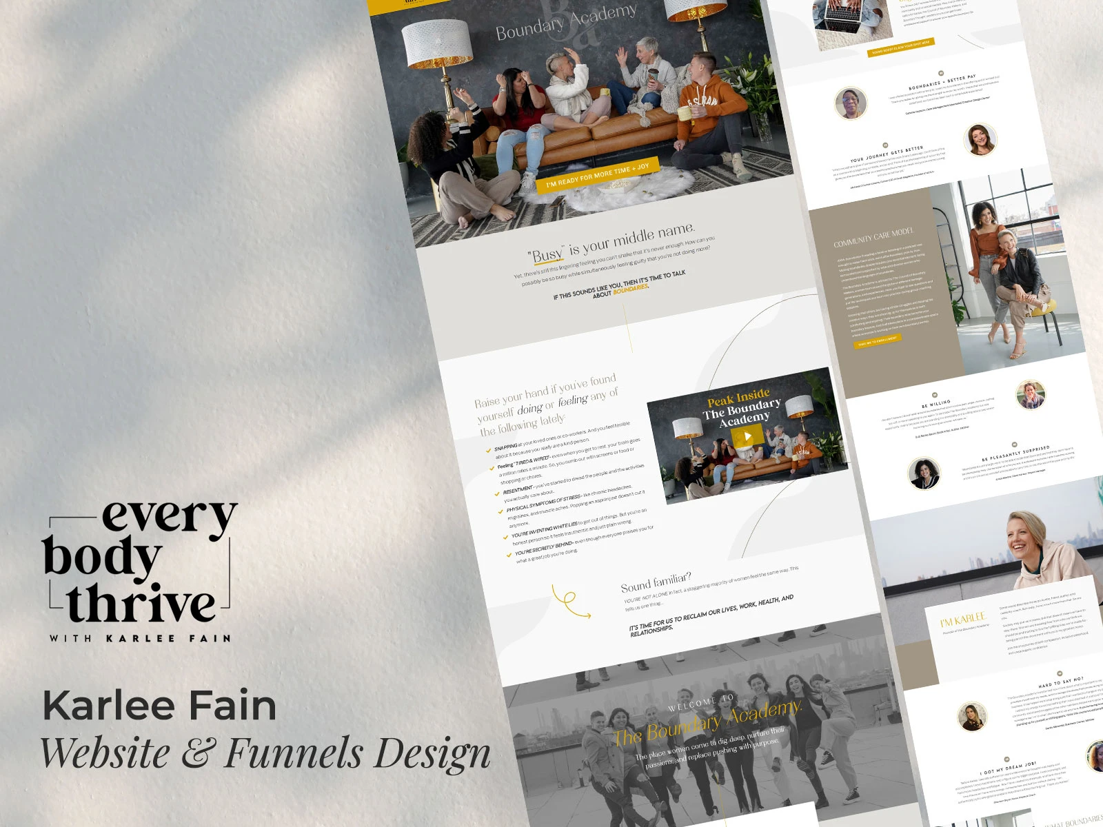 The website for Karlee Fain is a strong example of a clean, conversion-focused Kajabi website that balances personal branding with structured offer delivery. Built on Kajabi, the site uses a strategic layout, clear messaging hierarchy, and simplified navigation flow to guide users from discovery to action. The homepage immediately communicates the core value proposition—helping career-driven individuals gain clarity, energy, and balance—while directing visitors toward coaching, workshops, and programs.