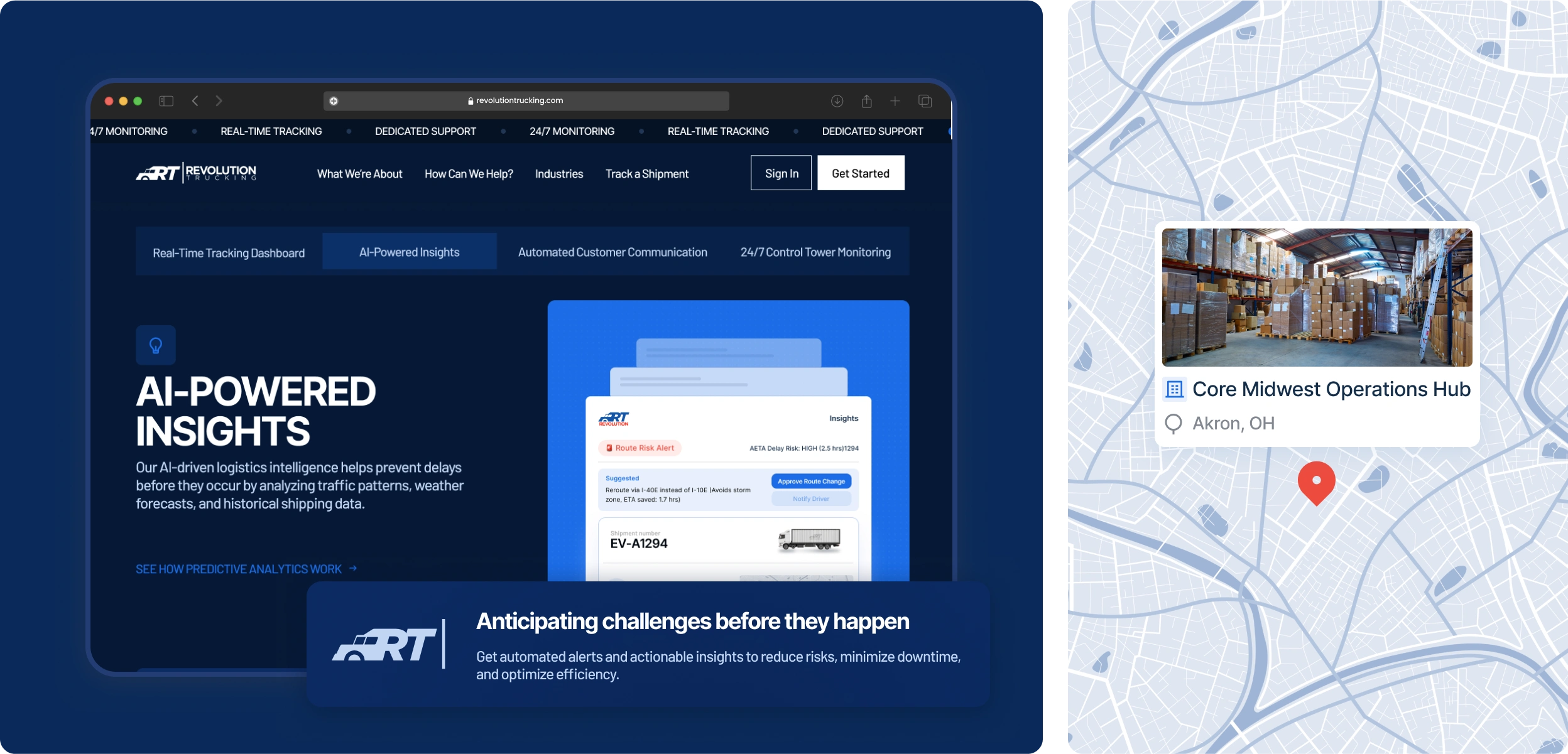 Revolution Trucking is a full-service logistics provider offering asset-based and brokered truckload solutions—covering dry van, flatbed, and power-only movements across the lower 48 states and beyond. The company emphasizes time-sensitive, high-value freight solutions across all transport modes—ground, air, and ocean—and supports industries like automotive, manufacturing, tech/data centers, construction, healthcare, and consumer goods.
