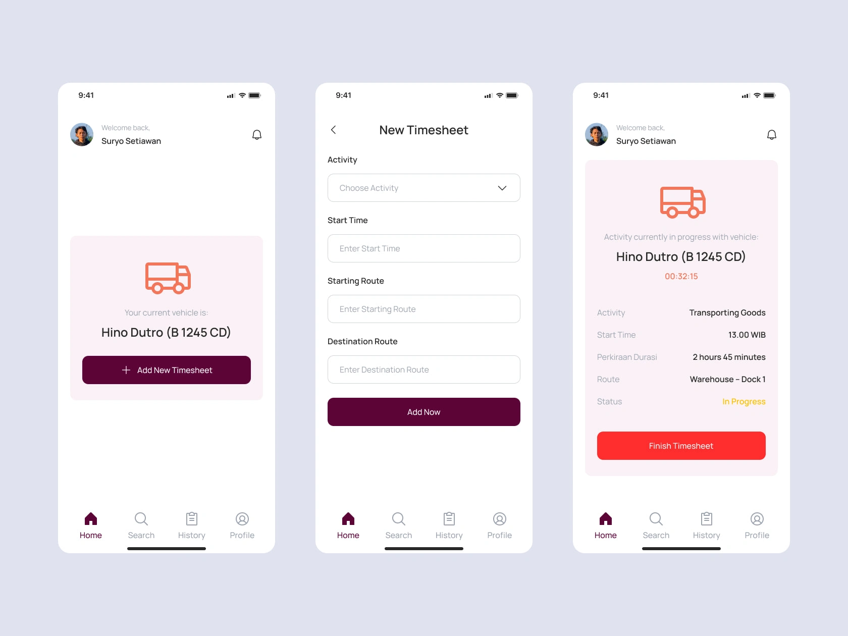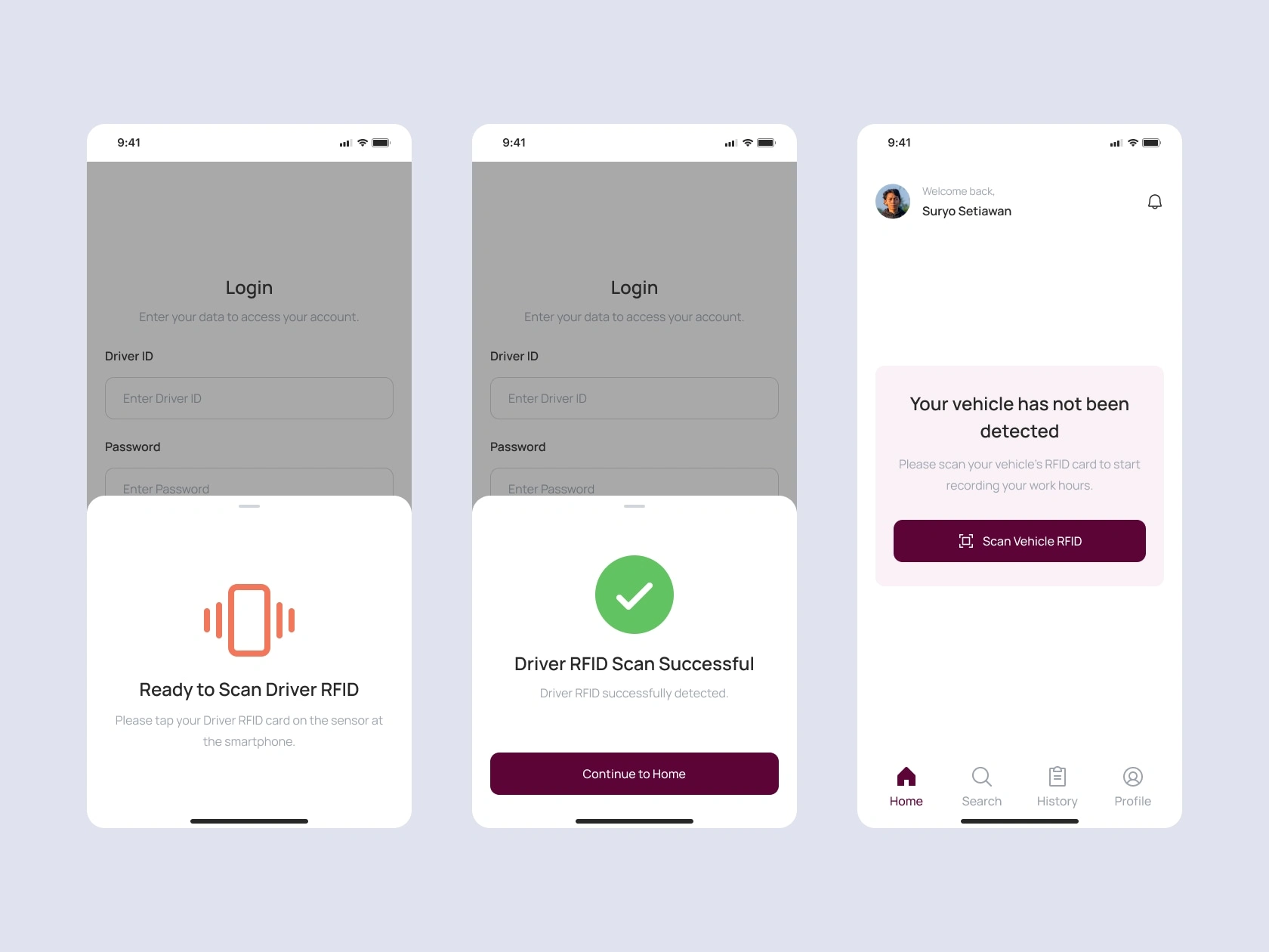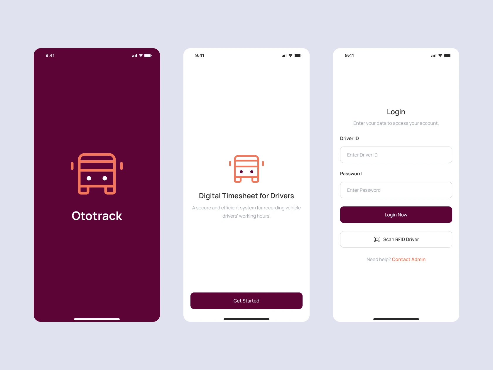 Ototrack is a mobile-based digital timesheet application created to help logistics drivers record their working hours, routes, and daily activities more efficiently. By integrating RFID tagging for both driver and vehicle identification, the app automates data entry and ensures better accuracy in every operation. As the UI/UX Designer, I was responsible for defining user flows, creating the visual interface, and building a high-fidelity prototype in Figma.