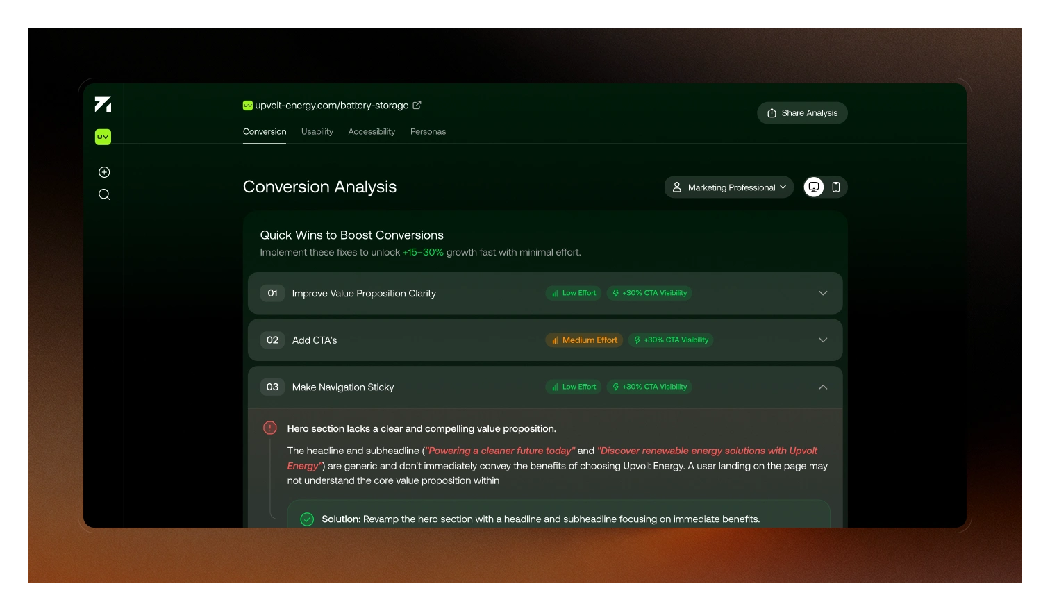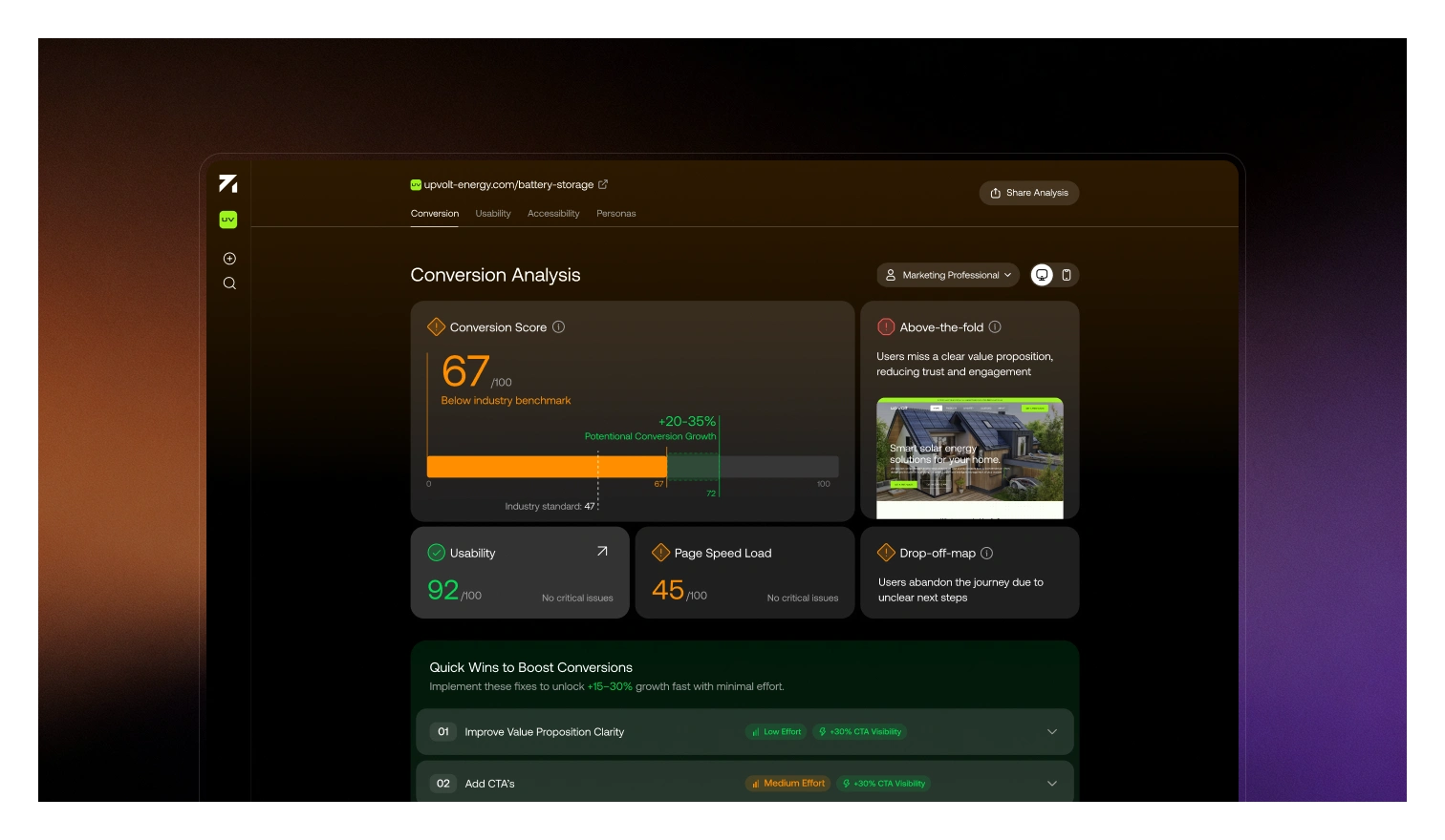 Learn how UXLAB’s own SaaS product delivered +25% CR improvement in just 5 minutes of AI analysis for our clients. Explore our design process and outcomes.