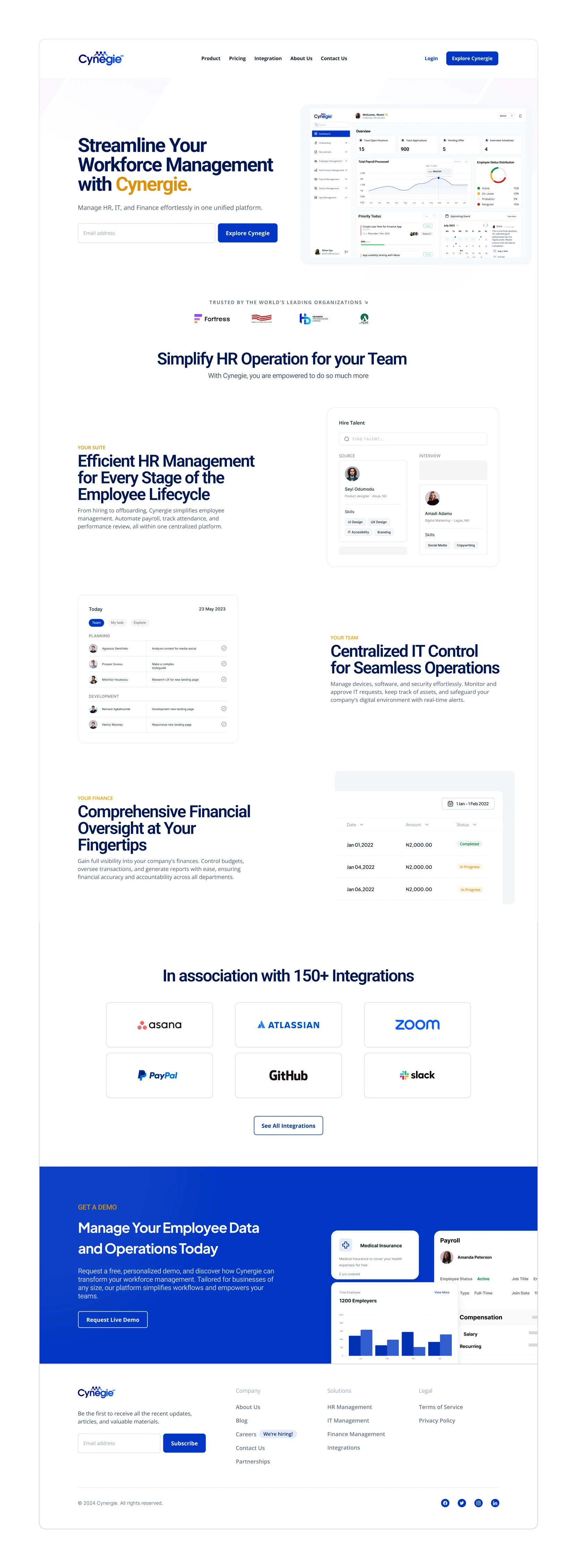 The final website presents CynegieHR as a clear, credible, and enterprise-ready SaaS platform, making it easier for visitors to understand the product’s value across HR, IT, and finance use cases. By structuring content around user intent and prioritising clarity over visual noise, the site supports faster comprehension, builds trust with decision-makers, and guides users toward requesting a demo with confidence.