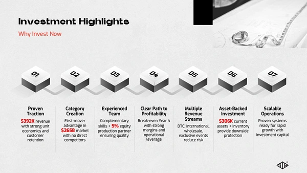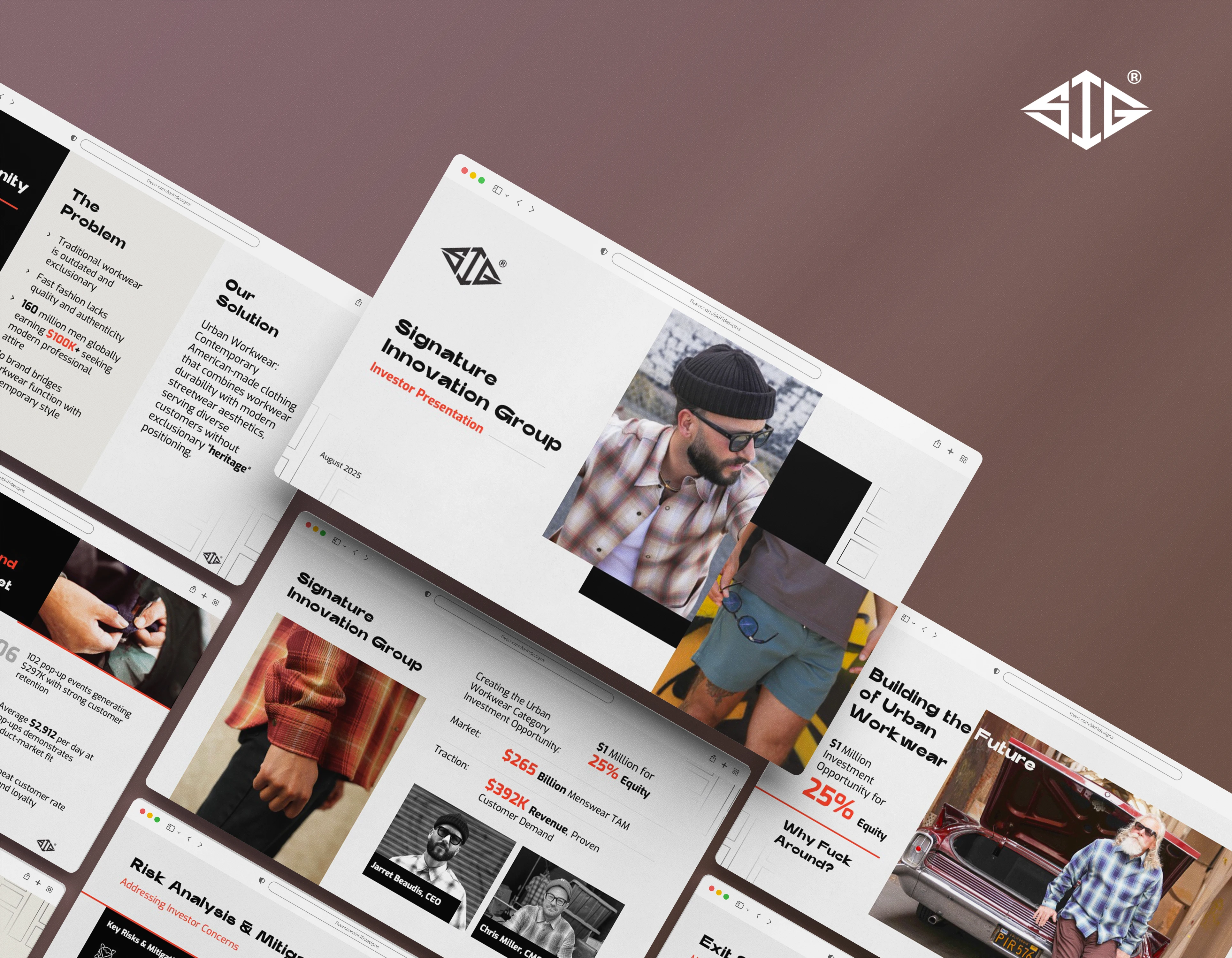 Created a branded presentation showcasing Signature Innovation Group’s vision, simplifying data into clear visuals that boosted client engagement.