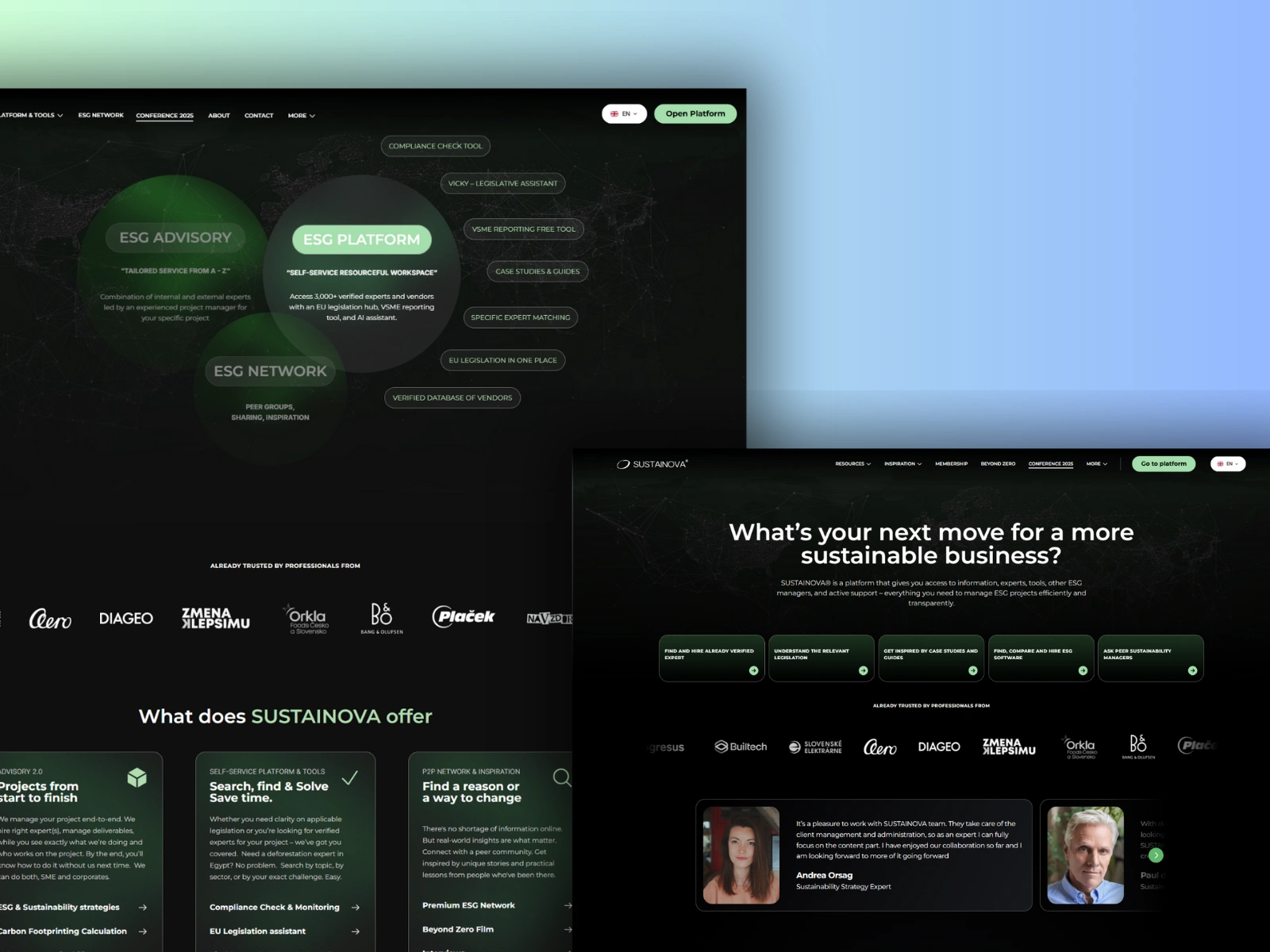 The new Sustainova site positions the brand as a trusted sustainability partner with a professional digital presence that matches their vision.