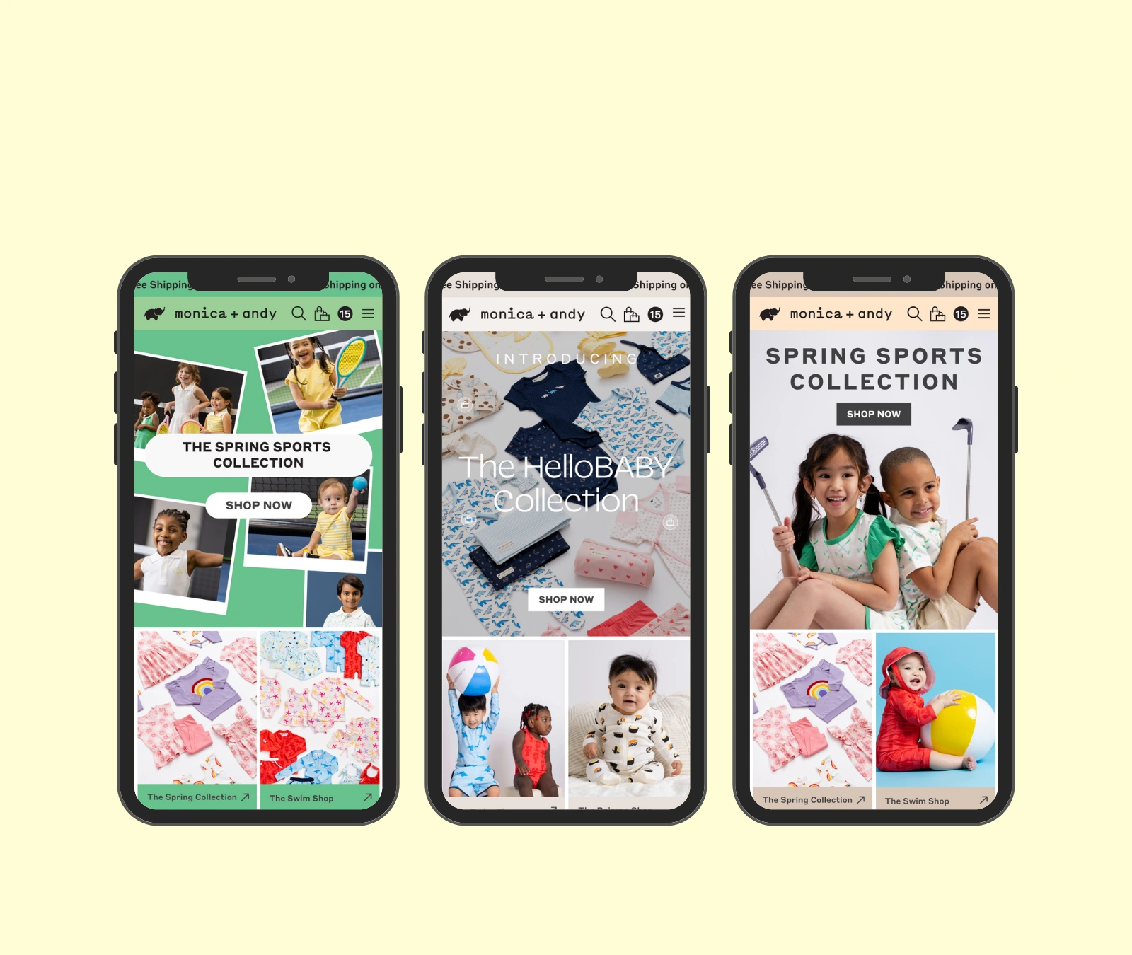 Monica + Andy needed a store experience that could keep pace with frequent product releases and seasonal campaigns. Their team wanted a flexible site structure that could highlight limited collections without disrupting the overall store layout or slowing down navigation for returning customers.