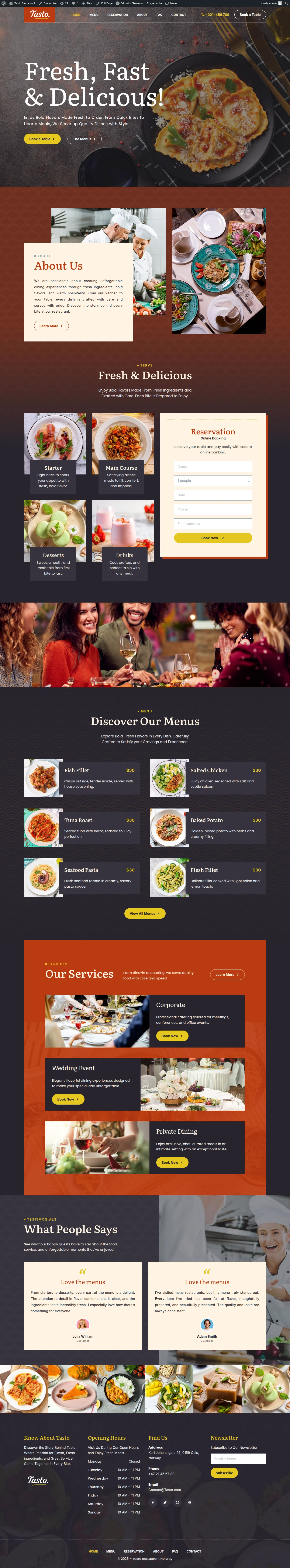 This website was developed for Tasto, a contemporary food restaurant offering a diverse menu of international dishes and chef-curated specials. The client wanted to showcase their culinary range with vivid imagery, simplify table reservations and takeaway orders, and present an engaging online presence that reflects their quality ingredients and welcoming atmosphere.