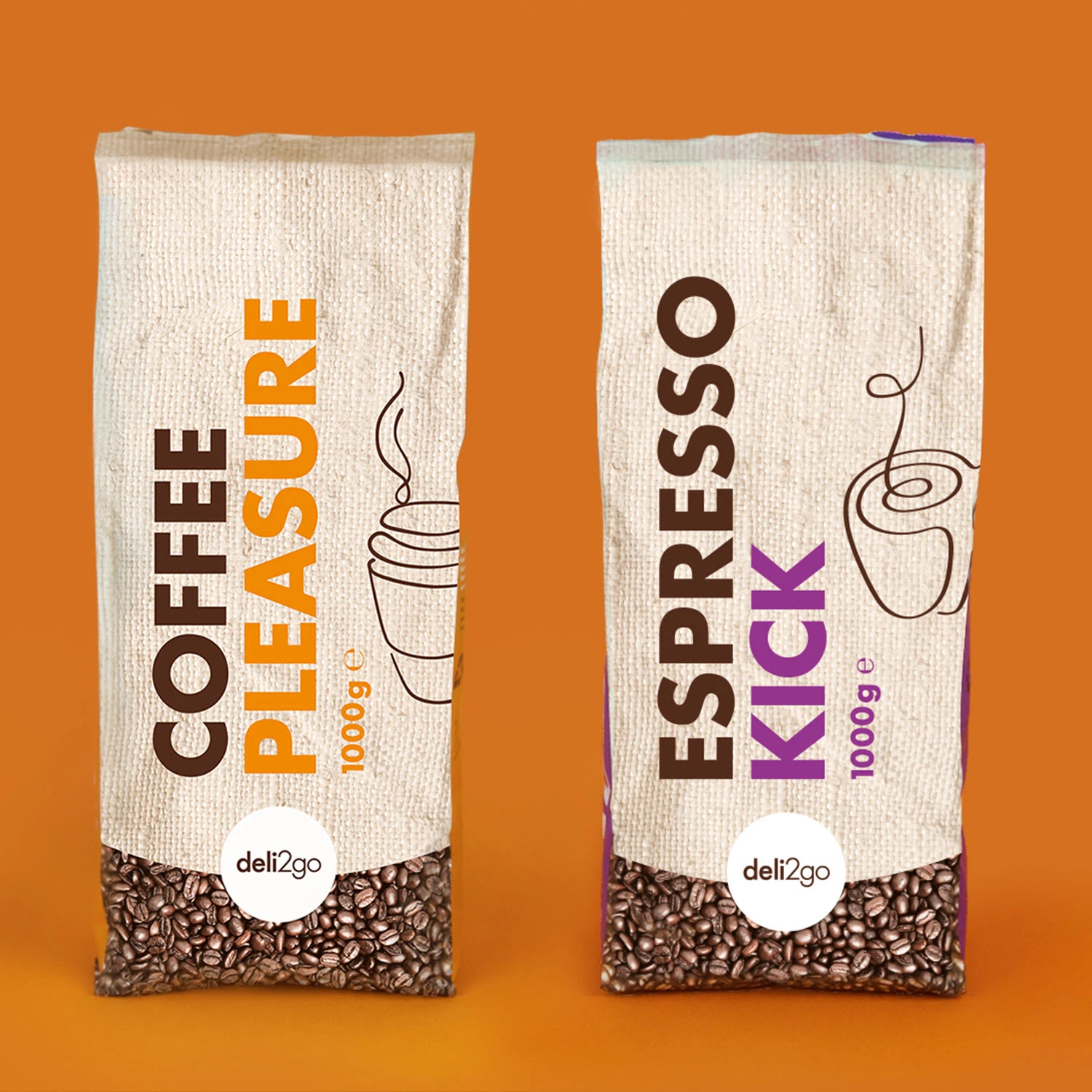 As part of the rebranding of the Deli2Go brand, a fresh design concept was needed for the B2B packaging designs, with the coffee bean packaging being the first to be modernised.