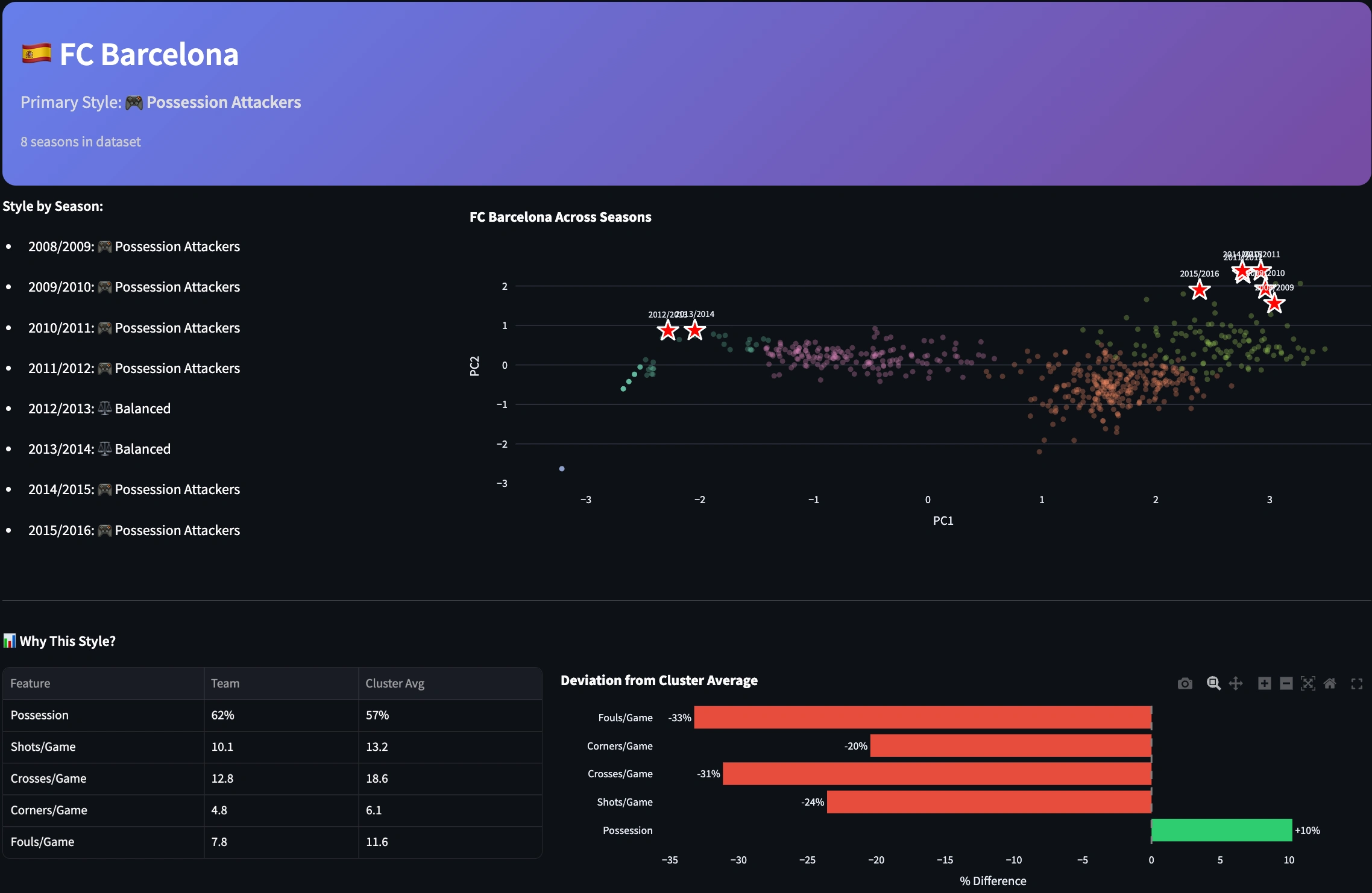 Built a clustering and analytics tool for European soccer data , visualizing team and player patterns using unsupervised ML.