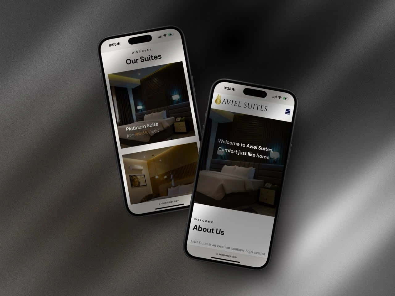 The UI/UX design for Aviel Suites reflects the hotel's blend of elegance and comfort, providing users with a seamless online experience. Every design element is meticulously crafted to exude luxury while maintaining a user-friendly interface. The layout prioritizes intuitive navigation, ensuring visitors can explore suites, facilities, and services effortlessly. Thoughtful touches, like high-quality visuals of the suites and streamlined booking features, elevate the user experience. The responsive design ensures the website performs flawlessly across all devices, aligning with Aviel Suites' commitment to excellence and hospitality.